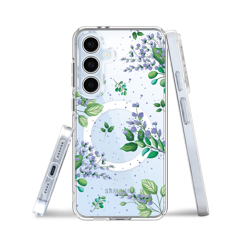 Etui do Samsung Galaxy S24 FE z MagSafe przeźroczyste, silikonowe Flexi, fioletowe kwiatki