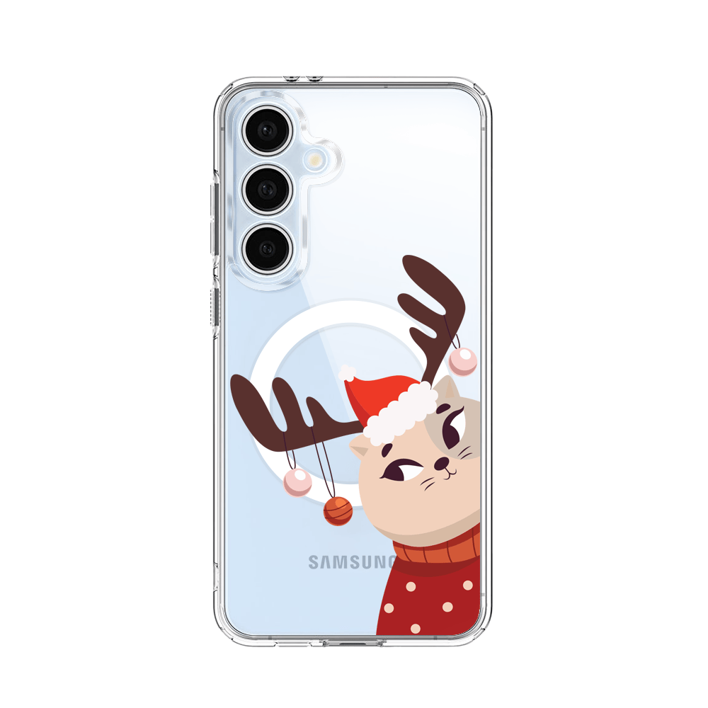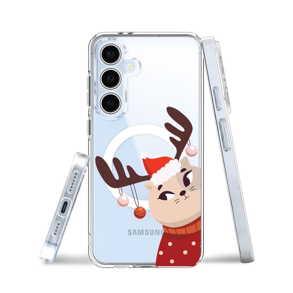Etui do Samsung Galaxy S24 FE z MagSafe przeźroczyste, silikonowe Flexi, Kotek przebrany za reniferka