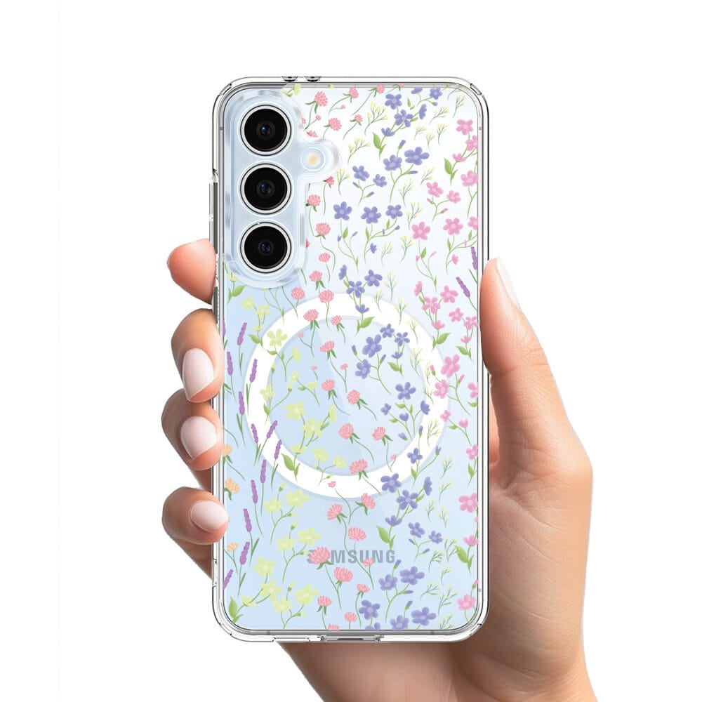 Etui do Samsung Galaxy S24 FE z MagSafe przeźroczyste, silikonowe Flexi, kwiaty polne