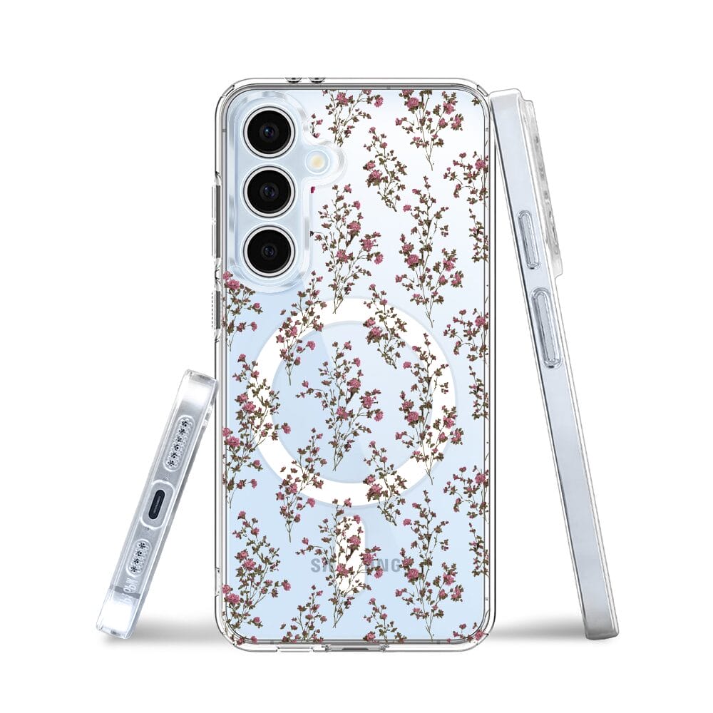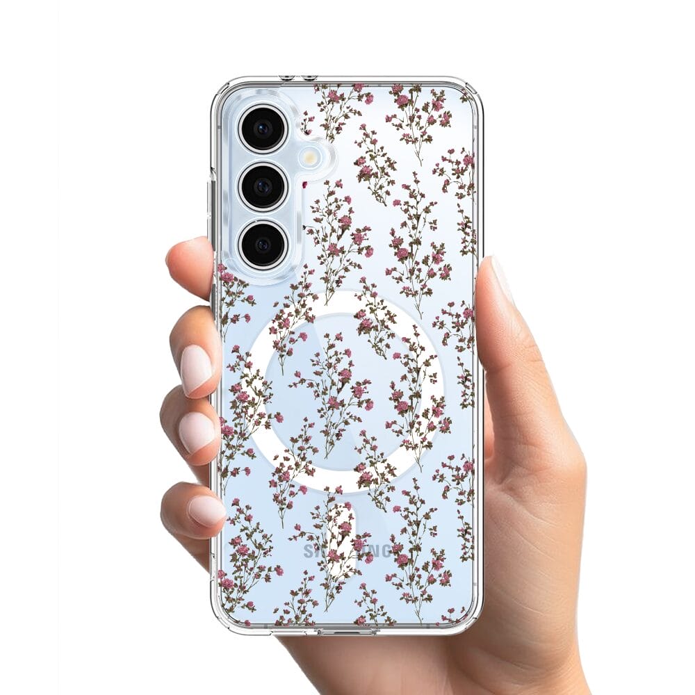 Etui do Samsung Galaxy S24 FE z MagSafe przeźroczyste, silikonowe Flexi, Mini Patterns, Różyczki