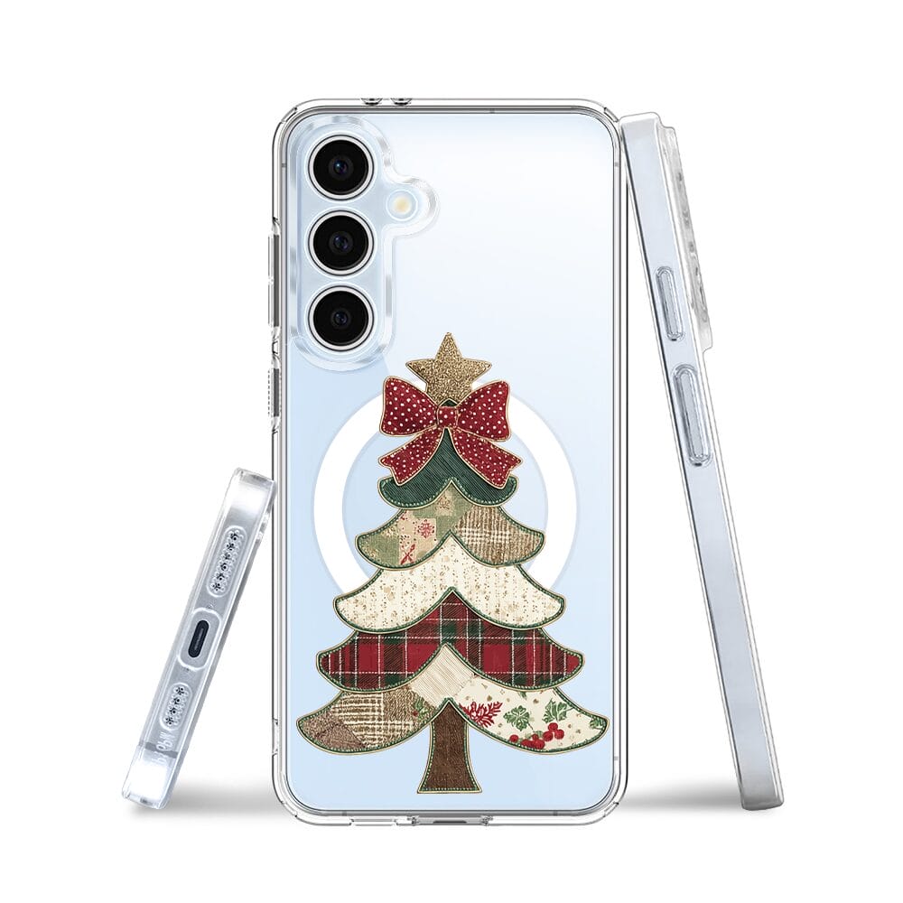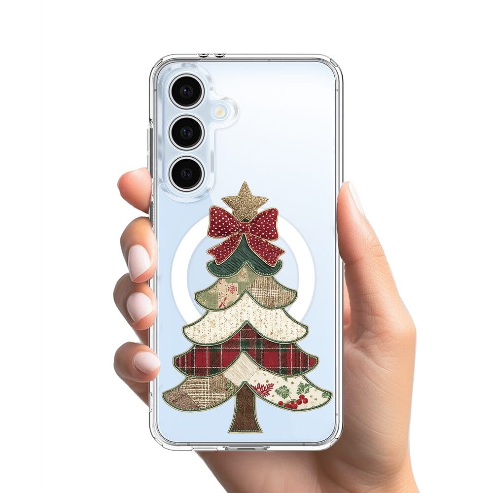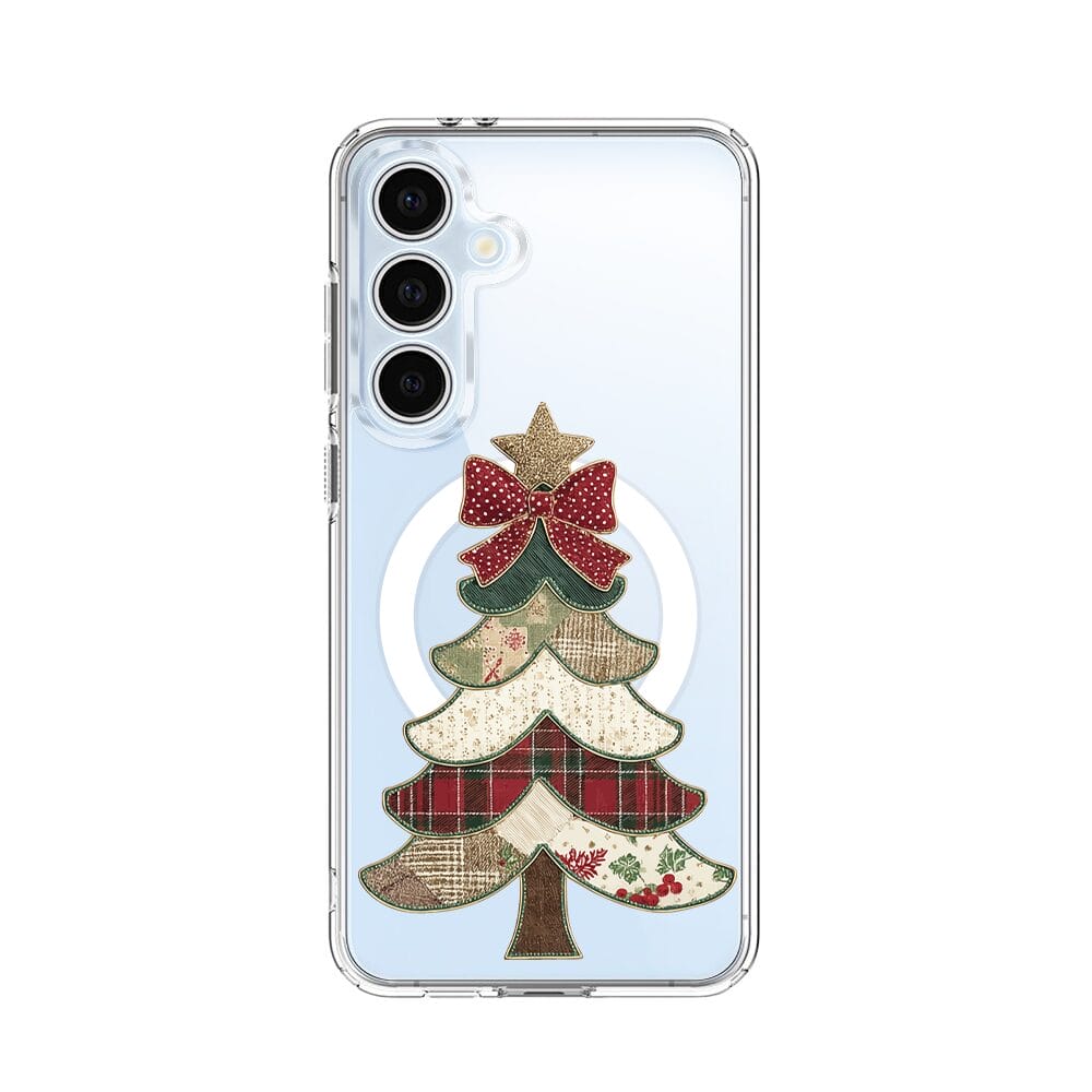 Etui do Samsung Galaxy S24 FE z MagSafe przeźroczyste, silikonowe Flexi, Przytulne święta, Kraciasta choinka