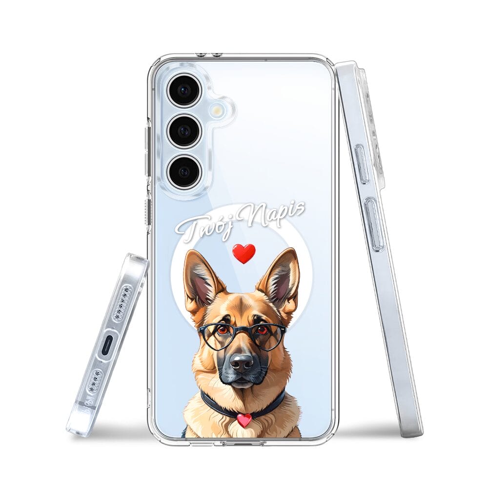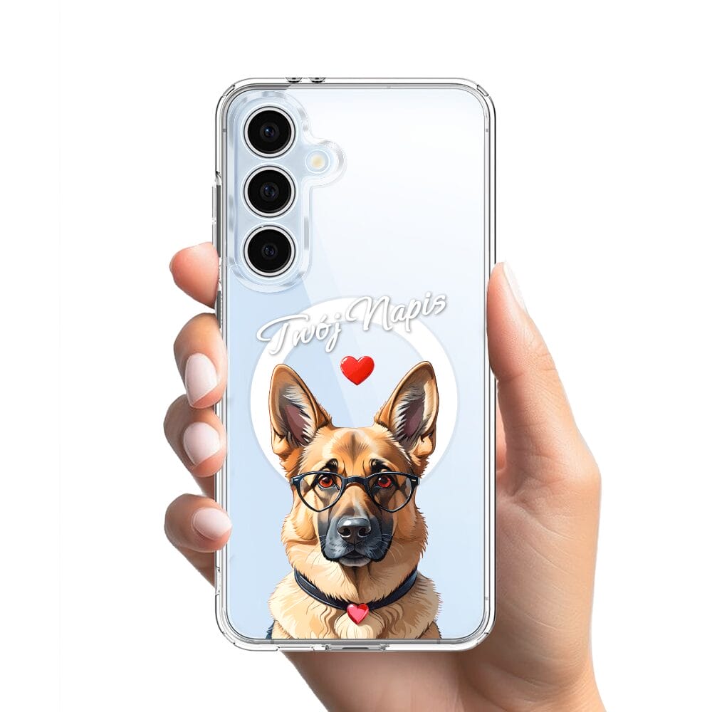 Etui do Samsung Galaxy S24 FE z MagSafe przeźroczyste, silikonowe Flexi, Puppy Love, pies rasy Owczarek Niemiecki