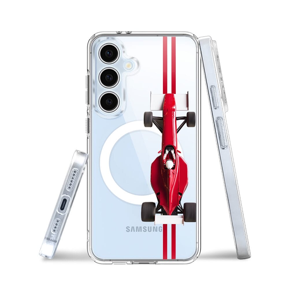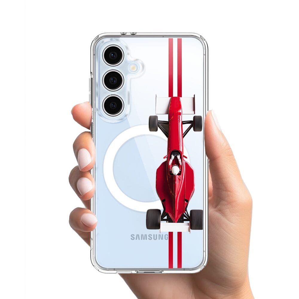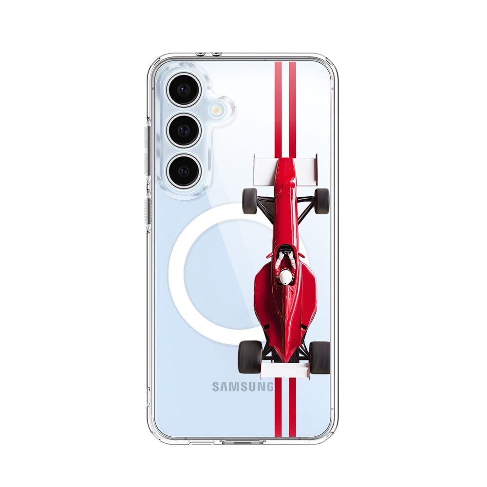 Etui do Samsung Galaxy S24 FE z MagSafe przeźroczyste, silikonowe Flexi, Szybkie Auta, czerwone F1