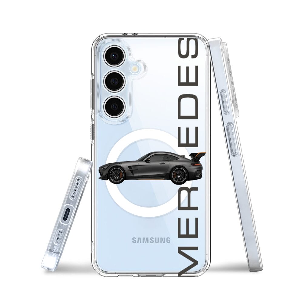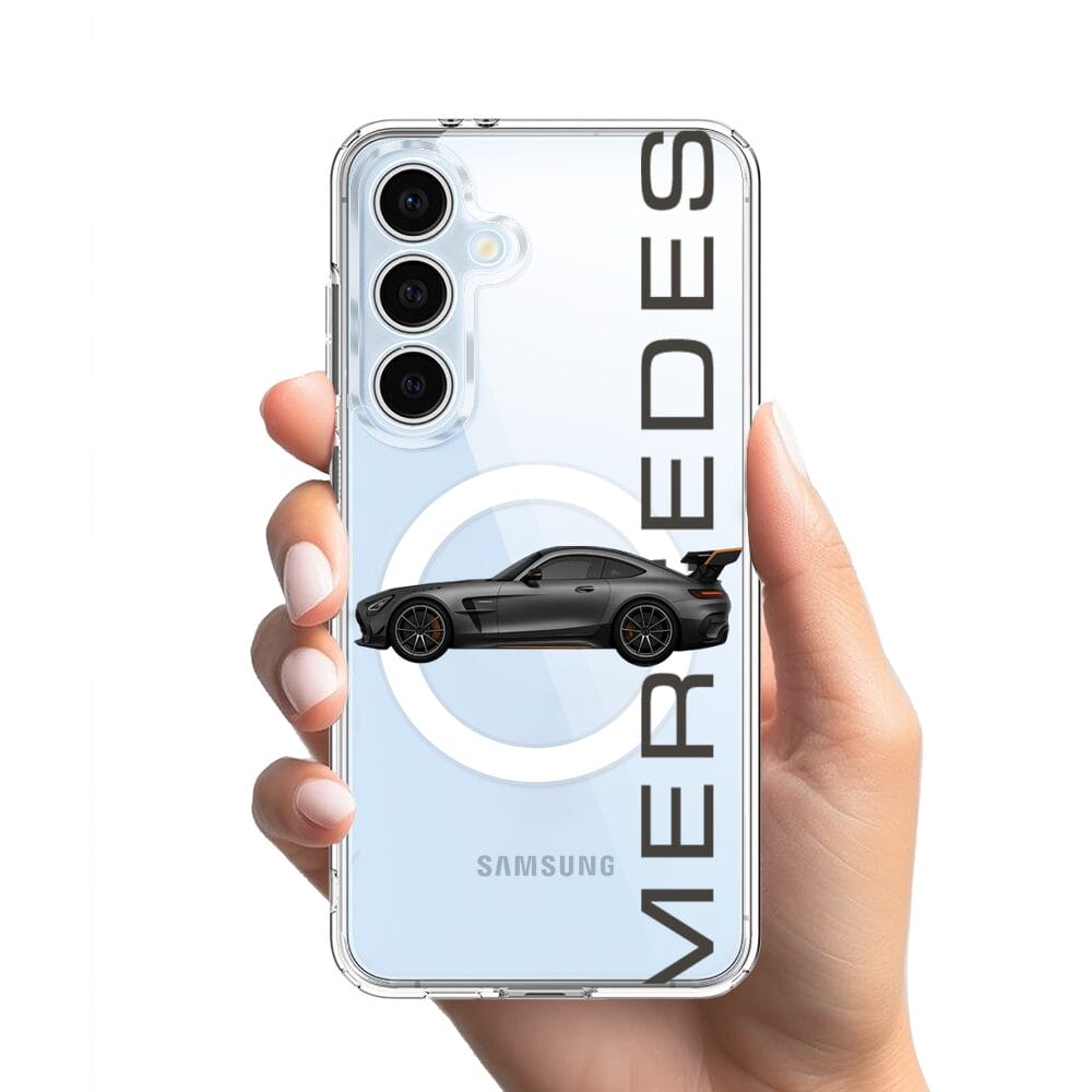 Etui do Samsung Galaxy S24 FE z MagSafe przeźroczyste, silikonowe Flexi, Szybkie Auta, Stalowe AMG-GT