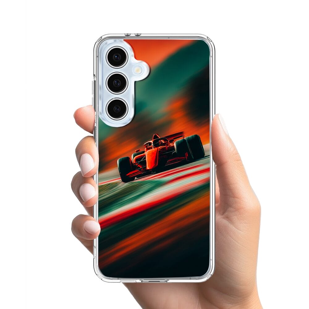 Etui do Samsung Galaxy S24 FE z MagSafe przeźroczyste, silikonowe Flexi, Szybkie Auta, Wyścig F1
