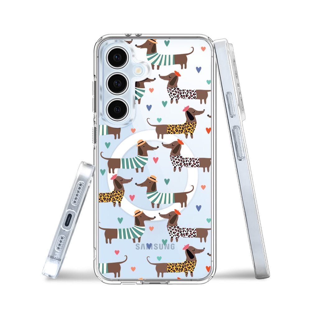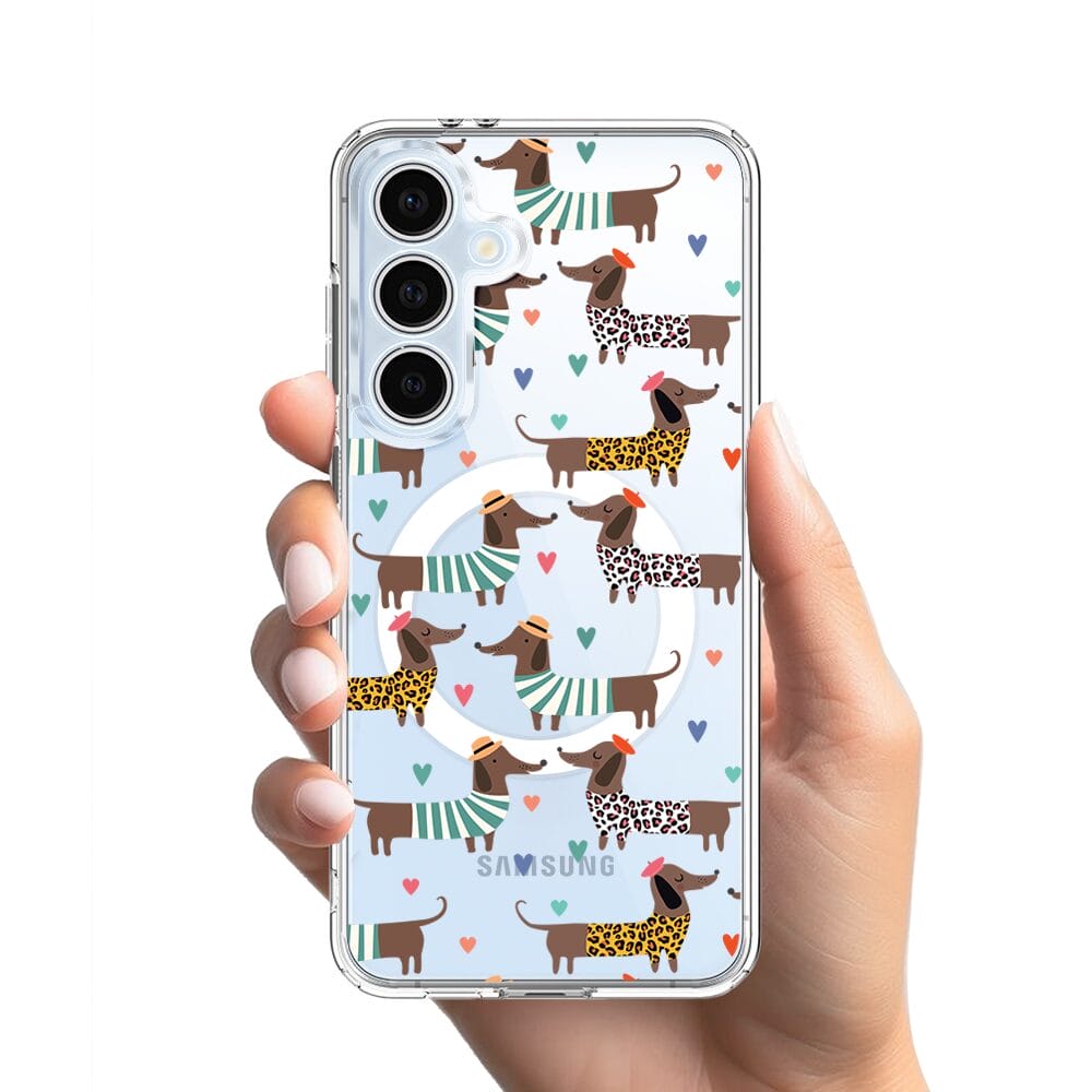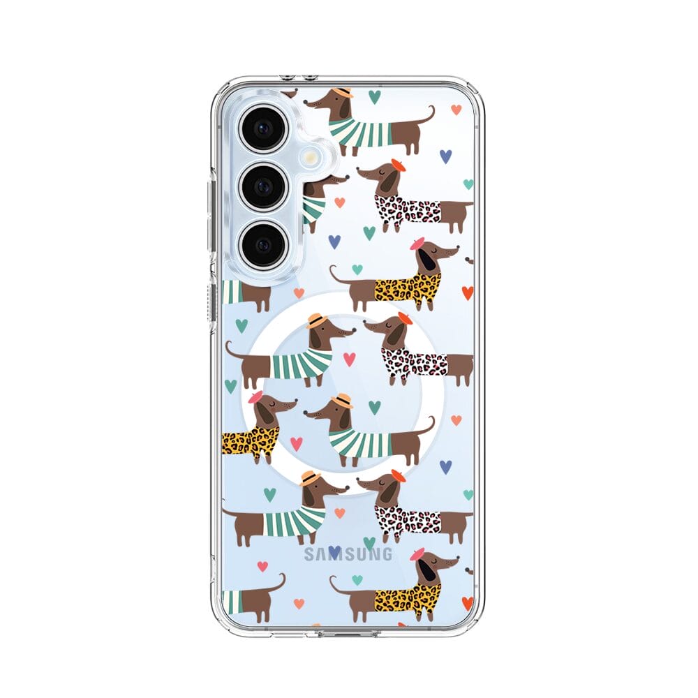 Etui do Samsung Galaxy S24 FE z MagSafe przeźroczyste, silikonowe Flexi, zakochane jamniki
