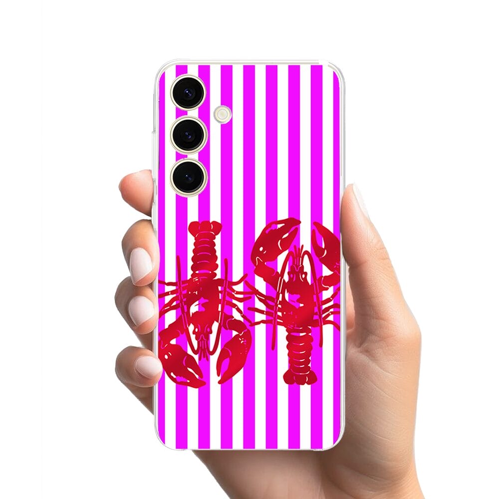 Etui do Samsung Galaxy S24 Plus przeźroczyste, silikonowe Flexi, kraby z różowymi paskami