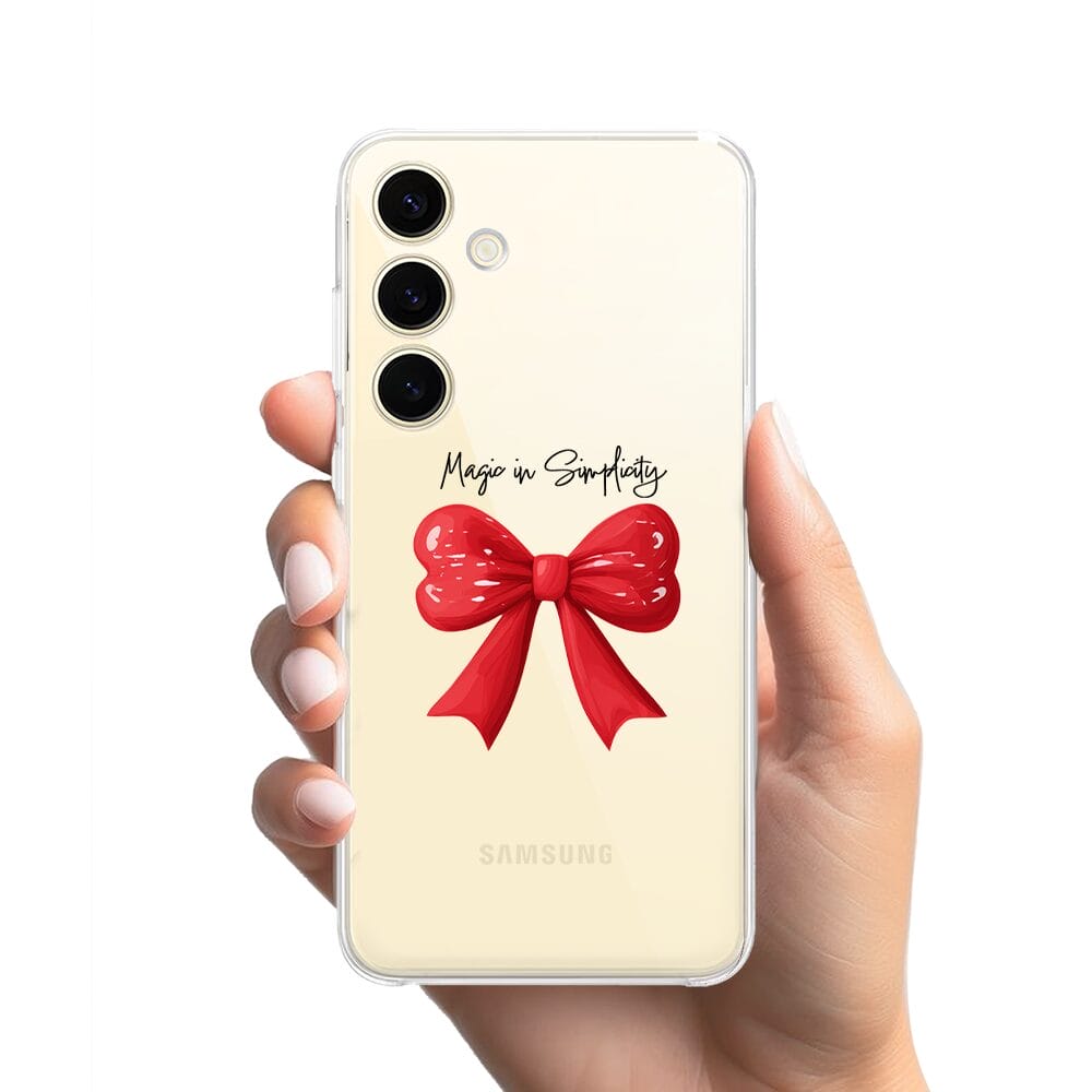 Etui do Samsung Galaxy S24 Plus przeźroczyste, silikonowe Flexi, Przytulne święta, Czerwona kokarda