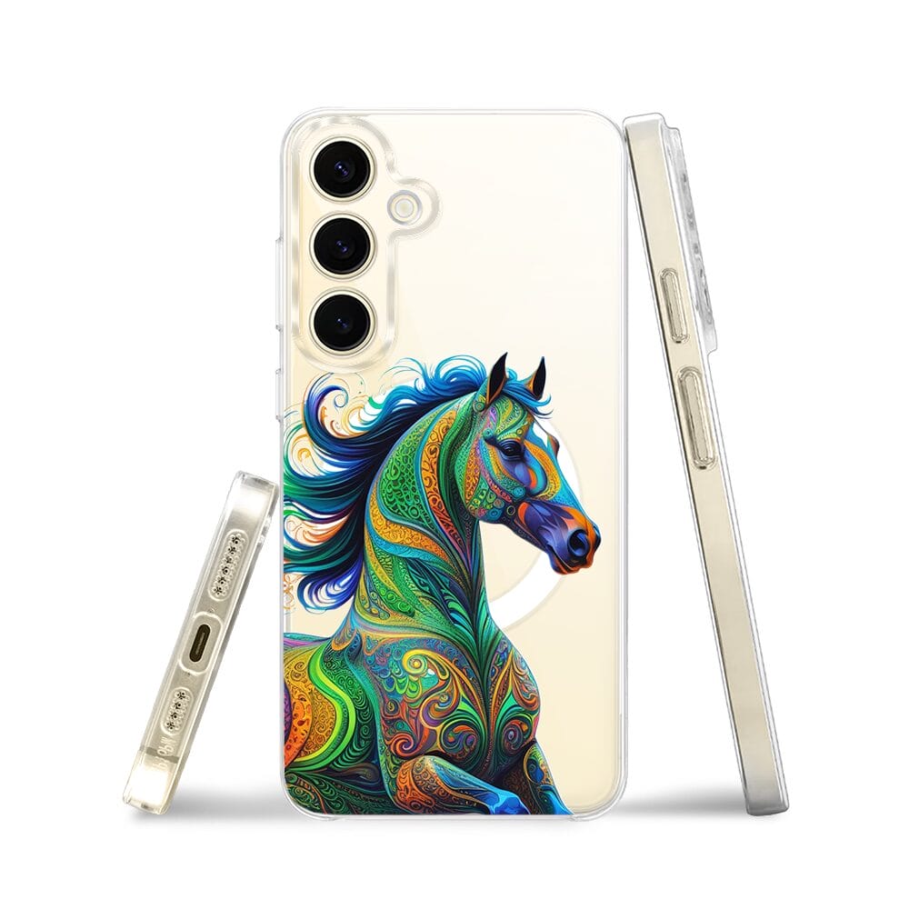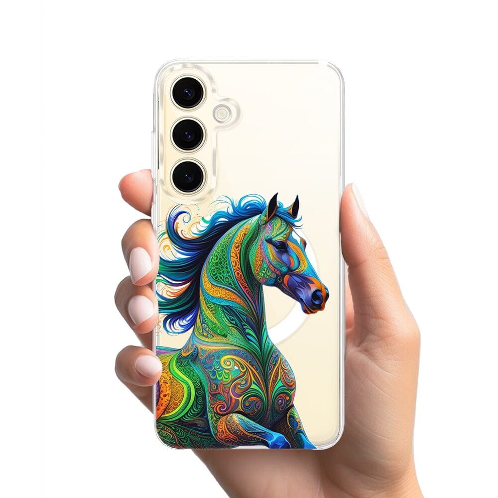 Etui do Samsung Galaxy S24 Plus z MagSafe przeźroczyste, silikonowe Flexi, Dzika Mandala, Koń
