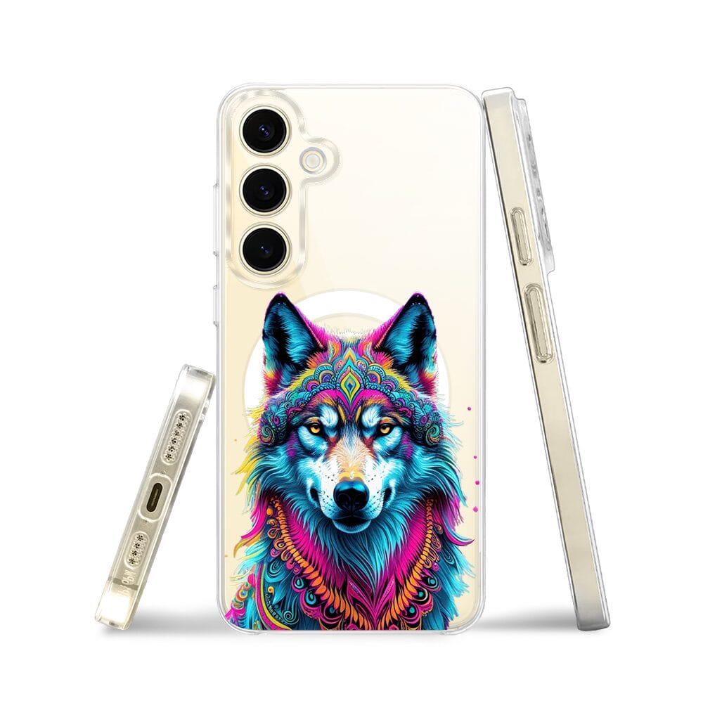 Etui do Samsung Galaxy S24 Plus z MagSafe przeźroczyste, silikonowe Flexi, Dzika Mandala, Wilk