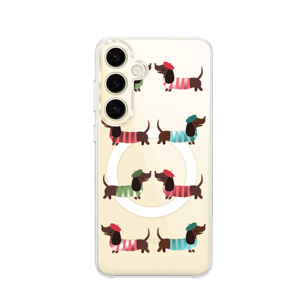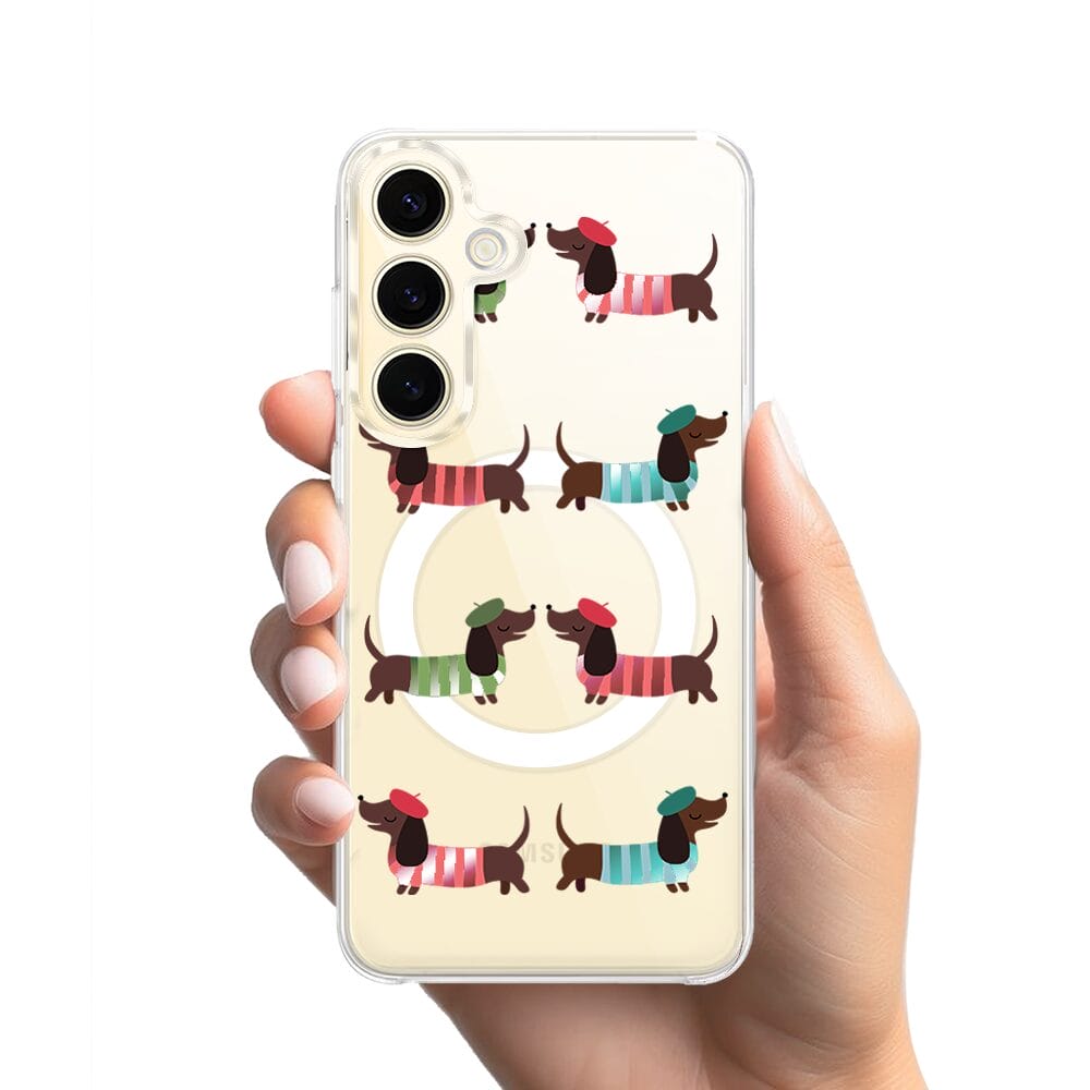 Etui do Samsung Galaxy S24 Plus z MagSafe przeźroczyste, silikonowe Flexi, jamnik w Paryżu