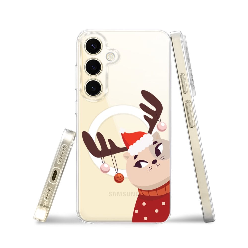 Etui do Samsung Galaxy S24 Plus z MagSafe przeźroczyste, silikonowe Flexi, Kotek przebrany za reniferka