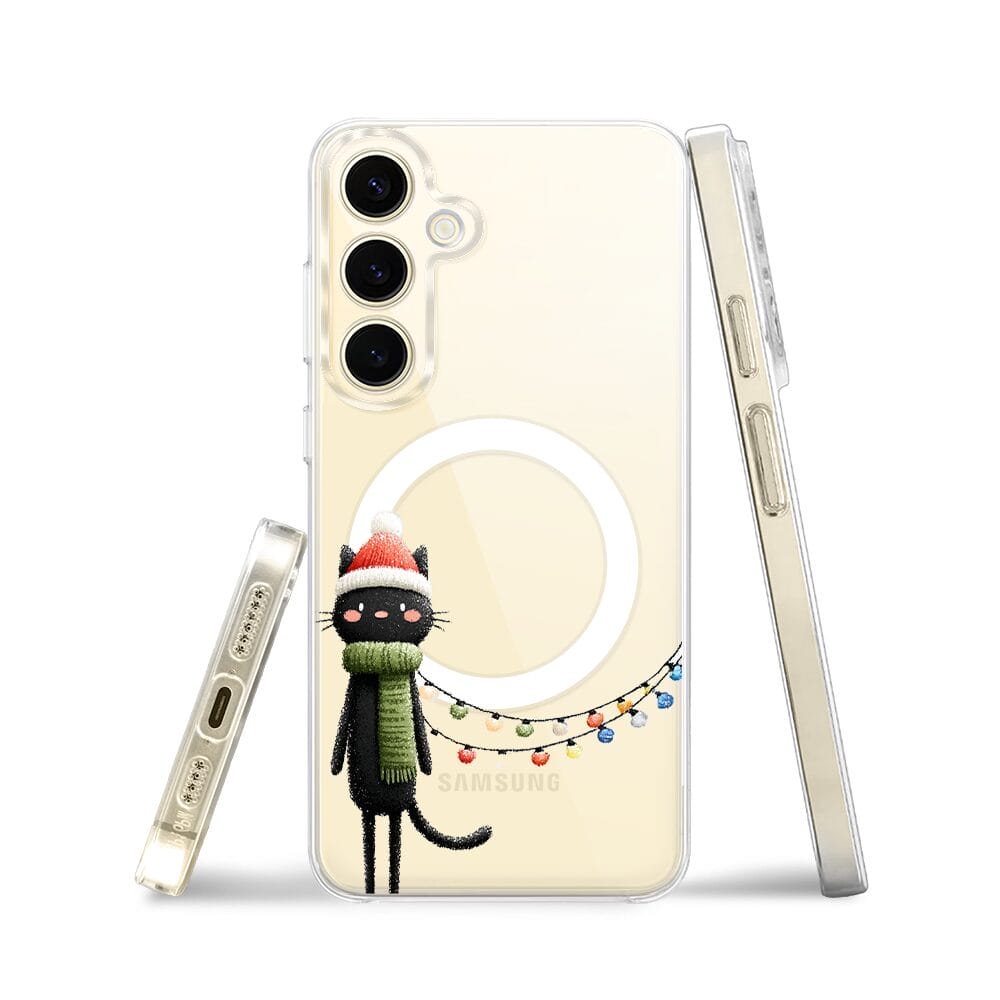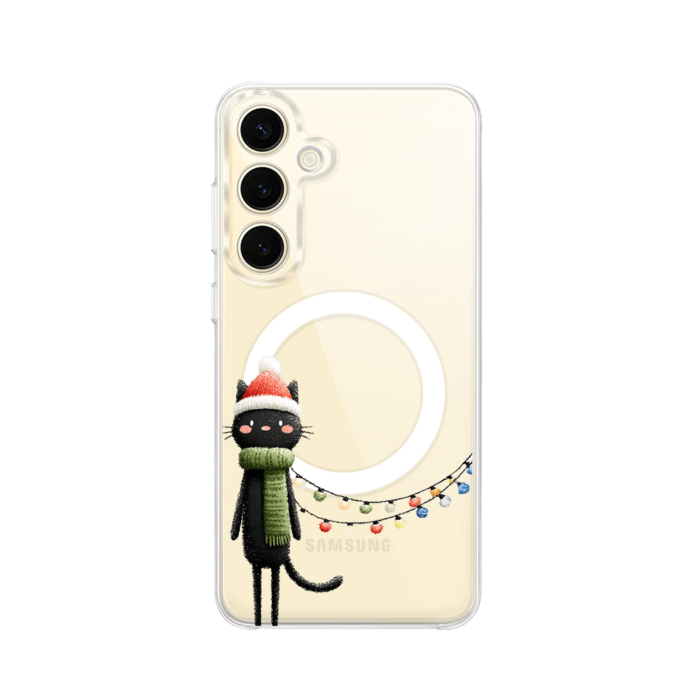 Etui do Samsung Galaxy S24 Plus z MagSafe przeźroczyste, silikonowe Flexi, Przytulne święta, Kot przebrany za elfa