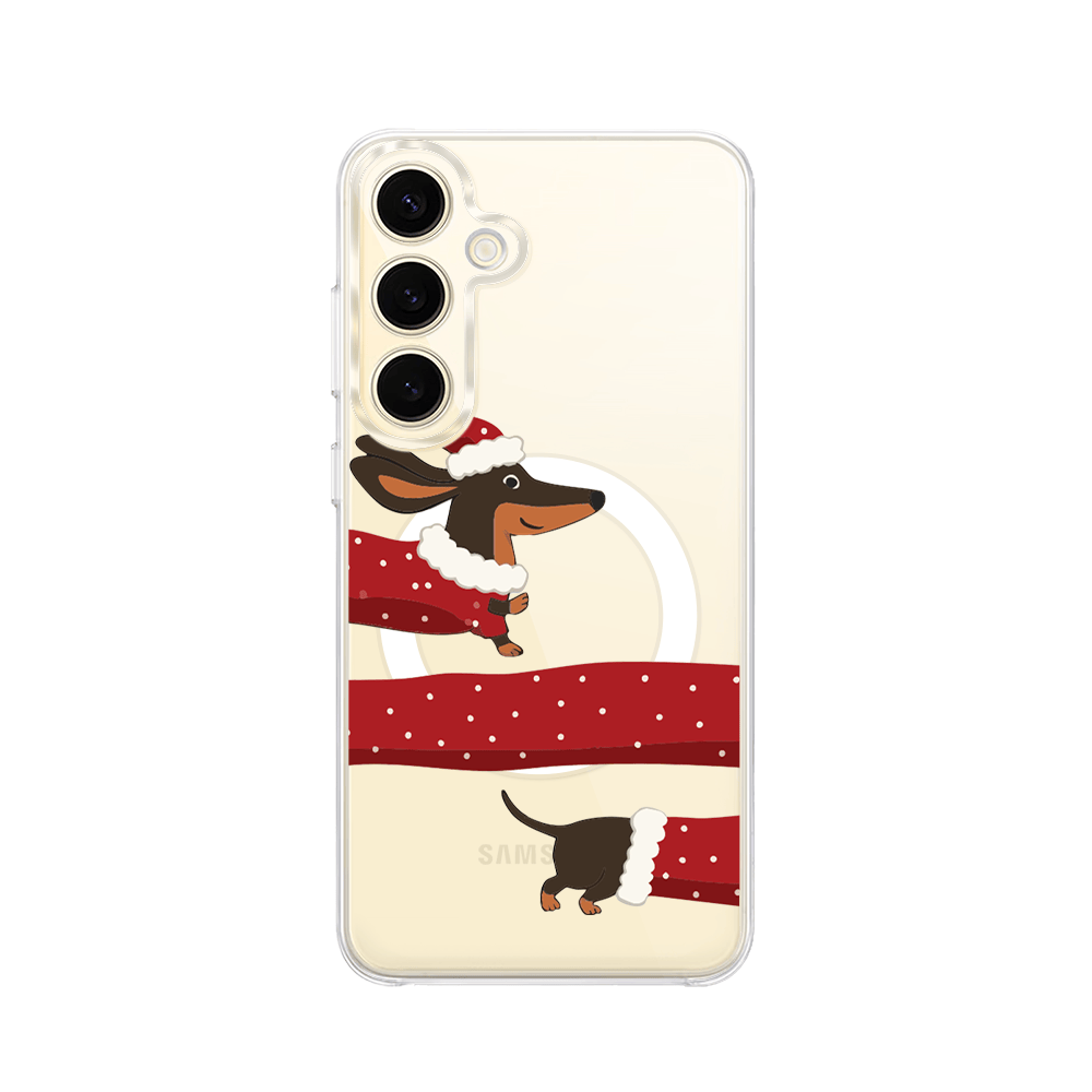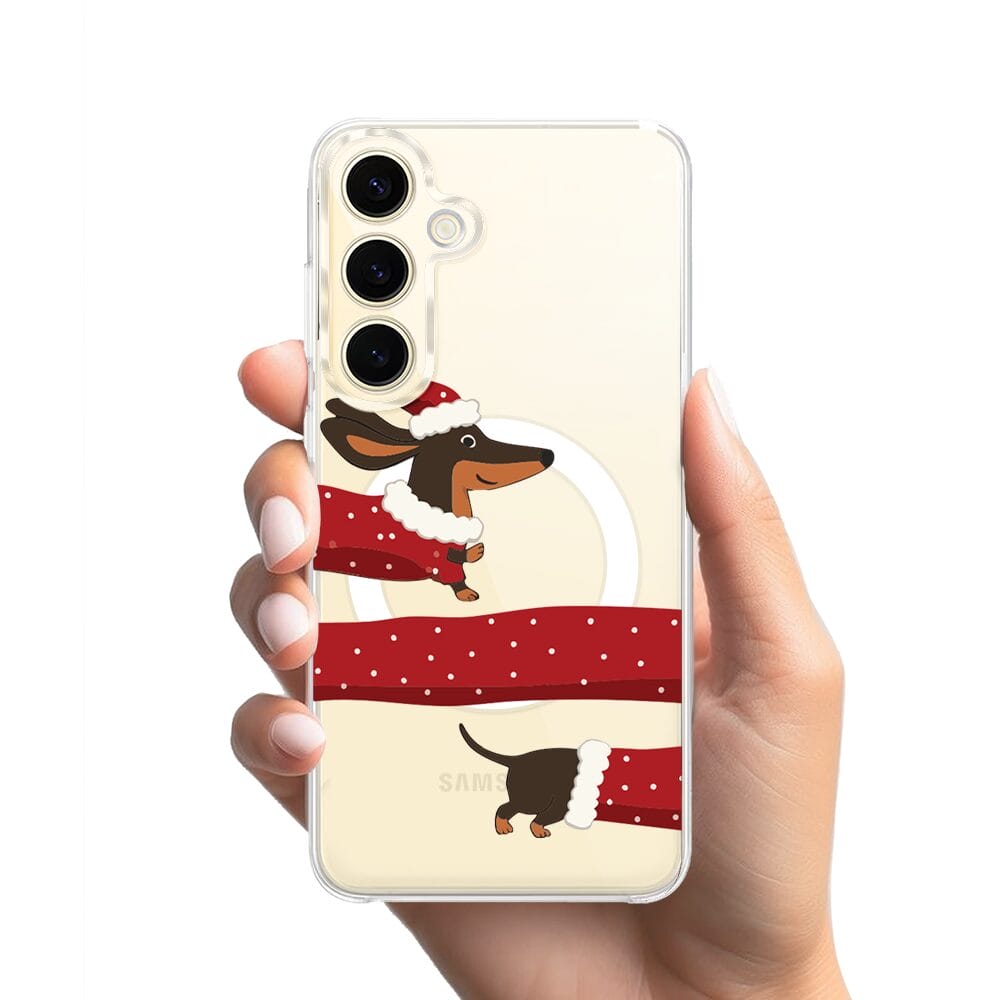 Etui do Samsung Galaxy S24 Plus z MagSafe przeźroczyste, silikonowe Flexi, Przytulne święta, świąteczny jamnik