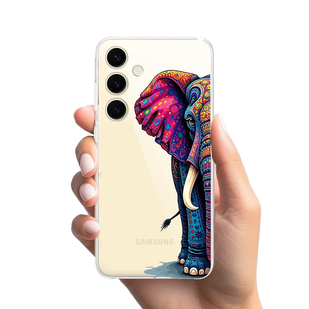 Etui do Samsung Galaxy S24 przeźroczyste, silikonowe Flexi, Dzika Mandala, Słoń