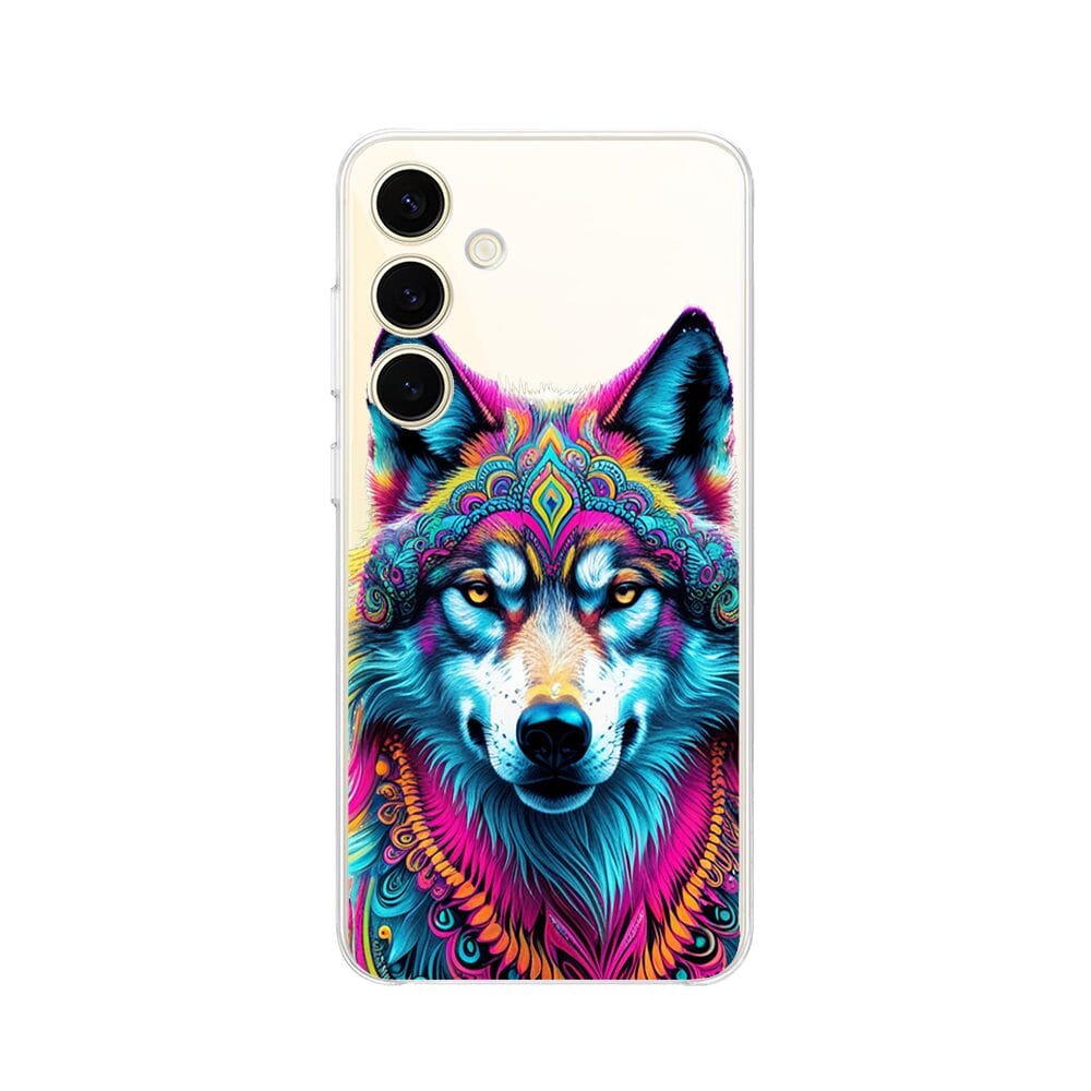Etui do Samsung Galaxy S24 przeźroczyste, silikonowe Flexi, Dzika Mandala, Wilk