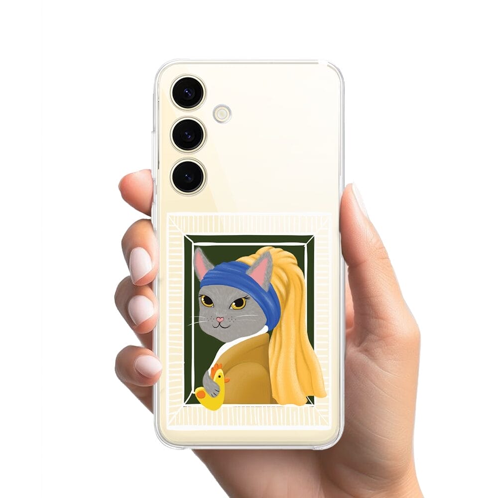 Etui do Samsung Galaxy S24 przeźroczyste, silikonowe Flexi, kotek z kurczakiem