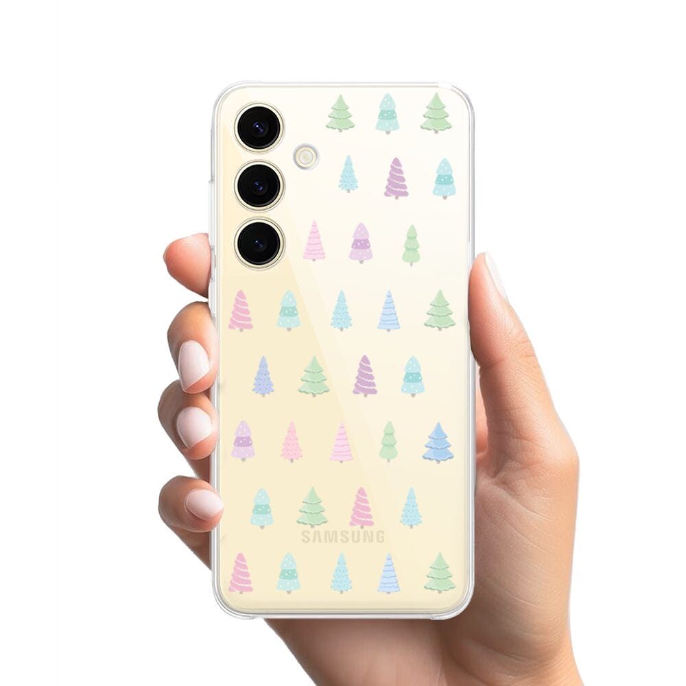 Etui do Samsung Galaxy S24 przeźroczyste, silikonowe Flexi, Pastelowe choinki