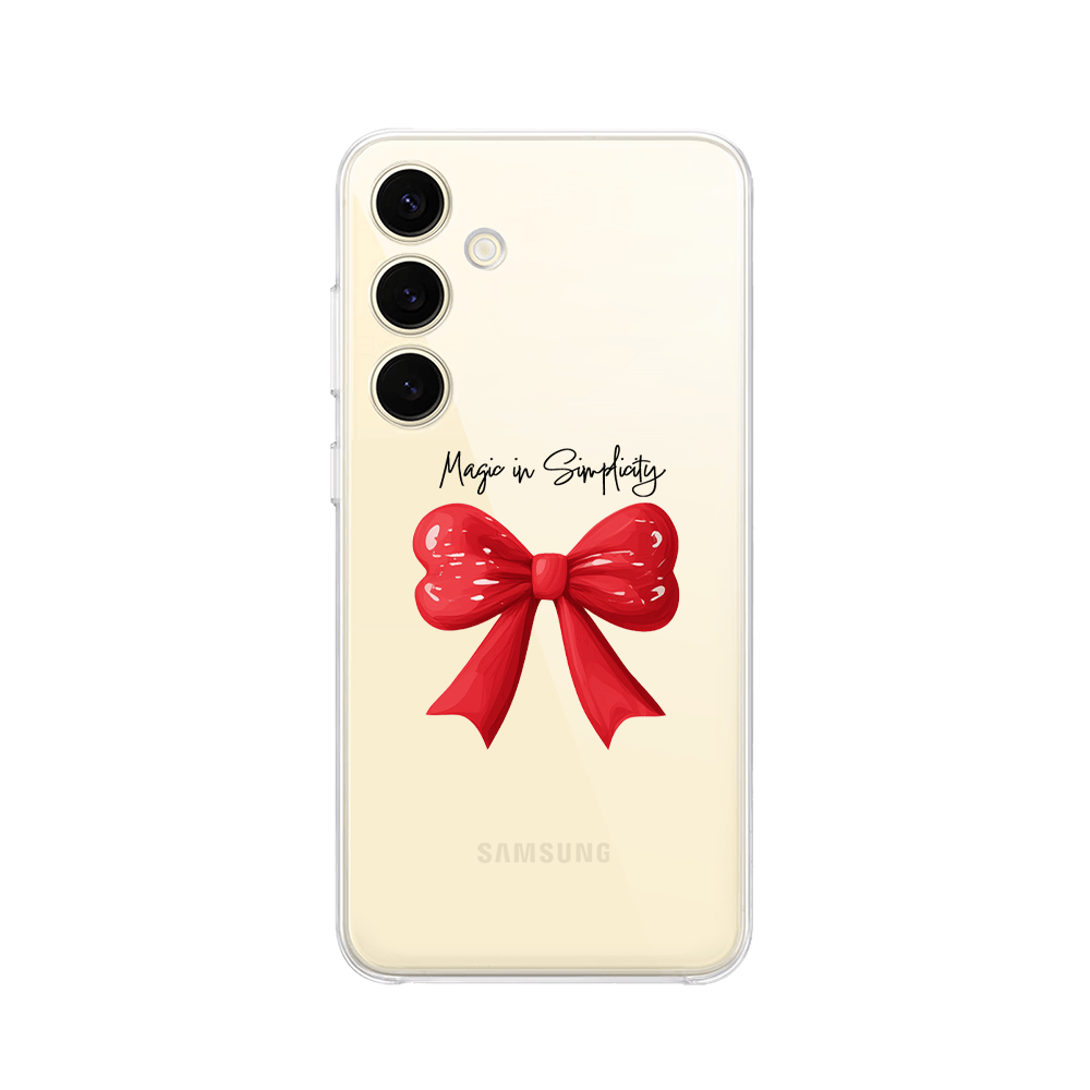 Etui do Samsung Galaxy S24 przeźroczyste, silikonowe Flexi, Przytulne święta, Czerwona kokarda