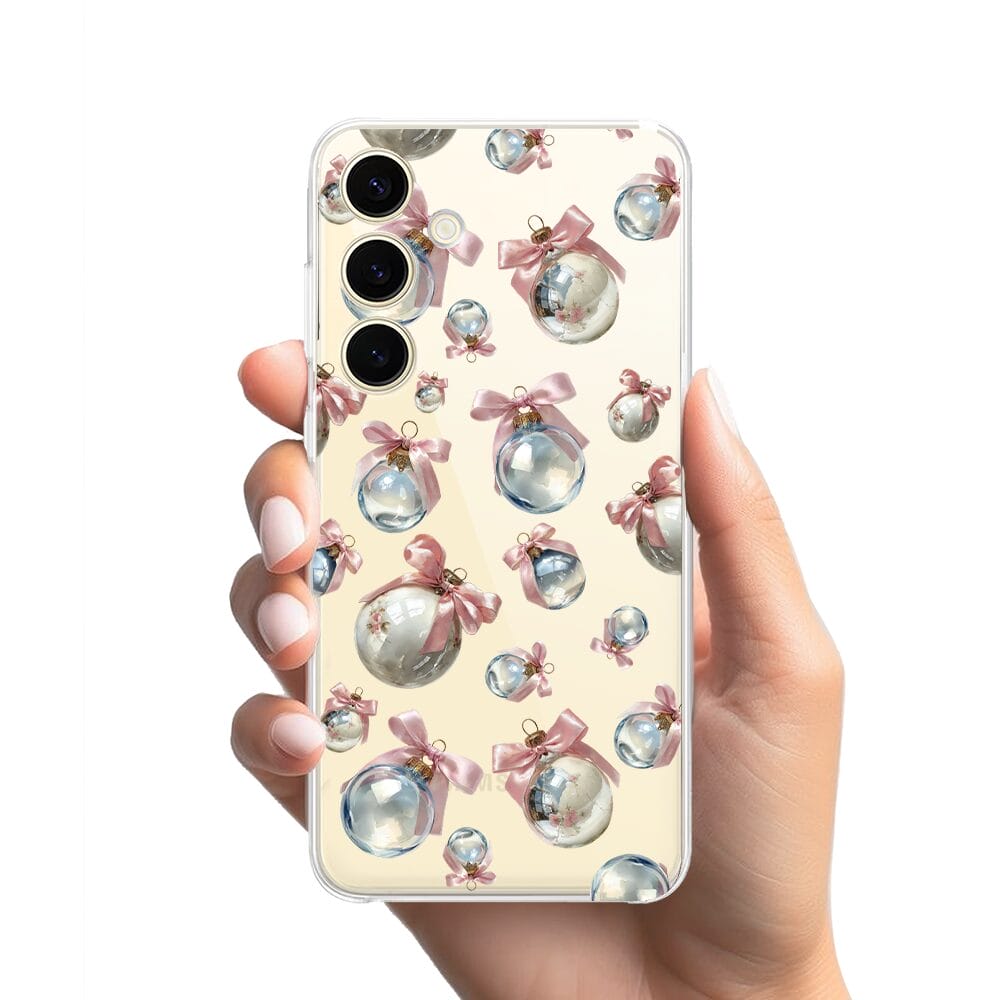 Etui do Samsung Galaxy S24 przeźroczyste, silikonowe Flexi, Przytulne święta, Pastelowe bombki
