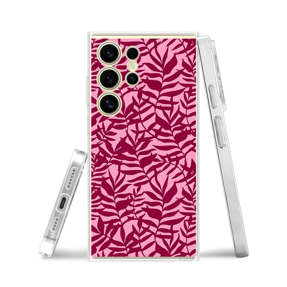 Etui do Samsung Galaxy S24 Ultra przeźroczyste, silikonowe Flexi, bordowe liście