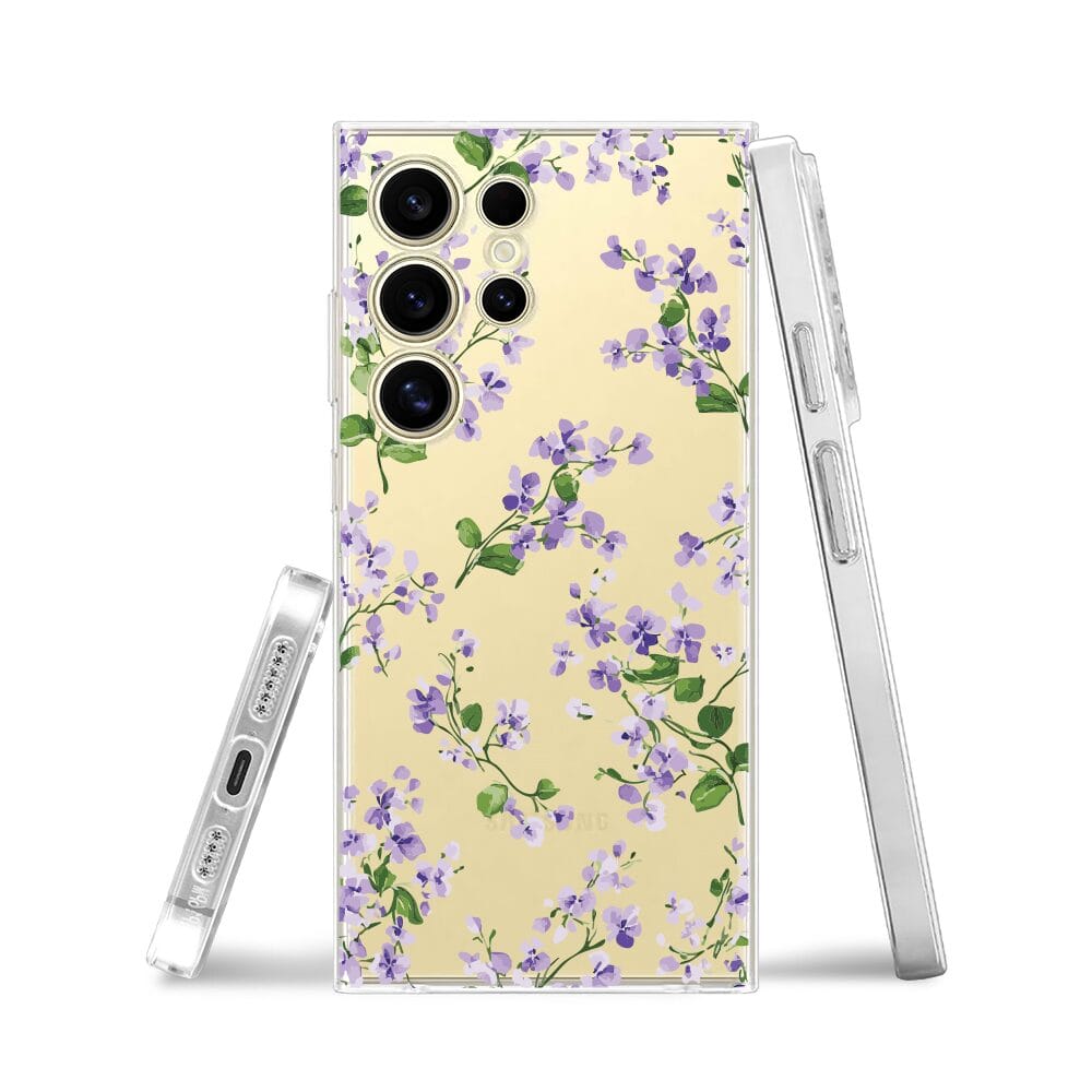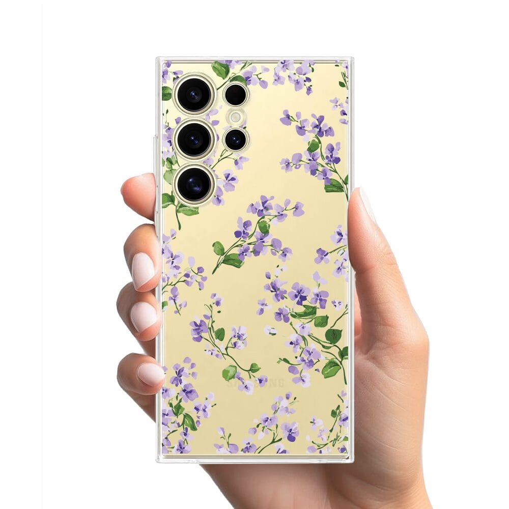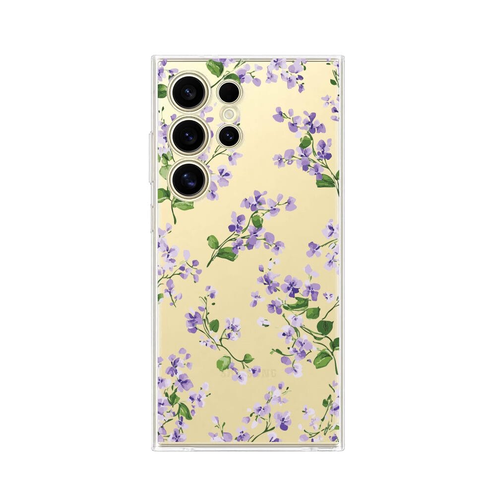Etui do Samsung Galaxy S24 Ultra przeźroczyste, silikonowe Flexi, Fioletowe Bratki