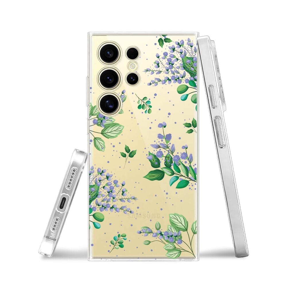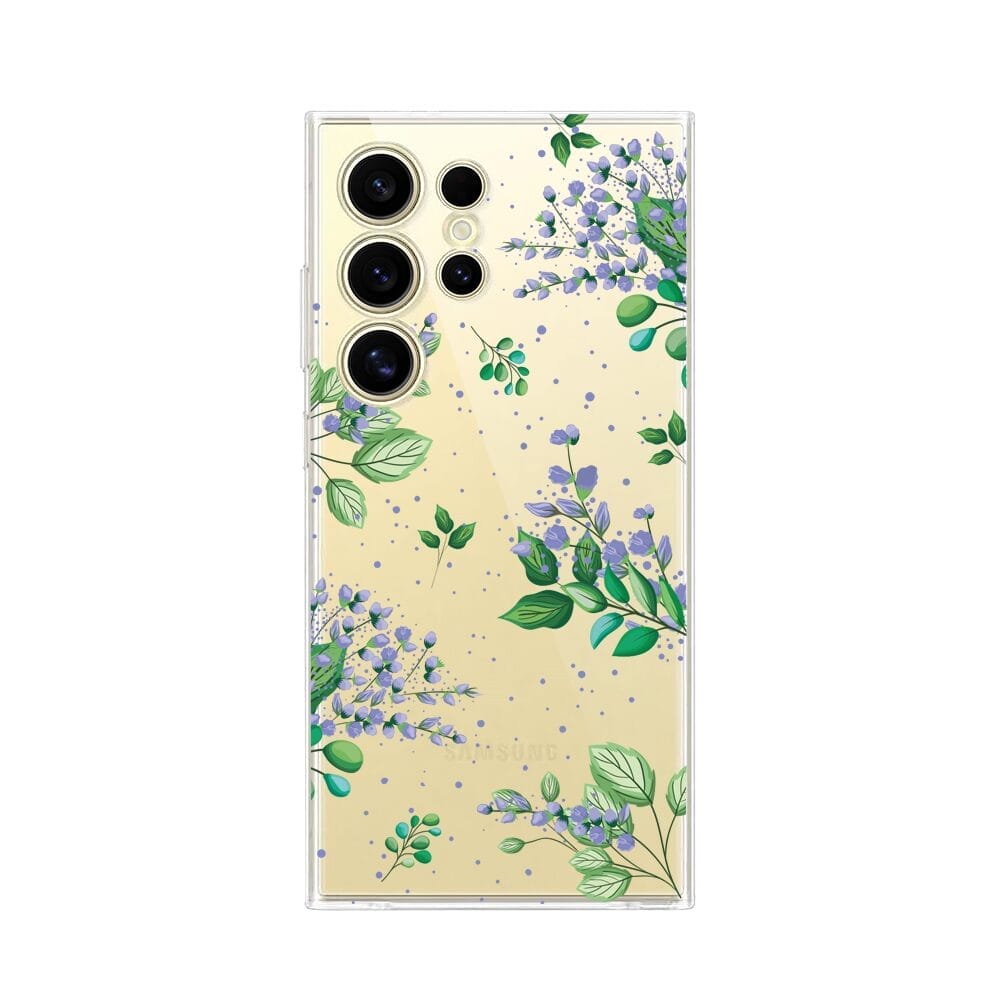 Etui do Samsung Galaxy S24 Ultra przeźroczyste, silikonowe Flexi, fioletowe kwiatki