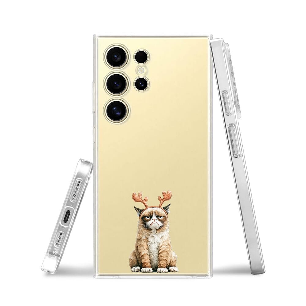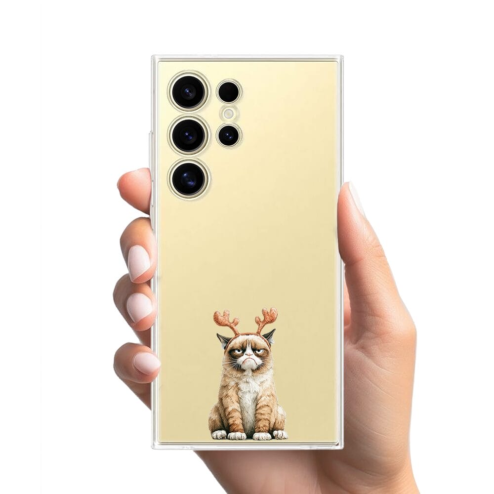 Etui do Samsung Galaxy S24 Ultra przeźroczyste, silikonowe Flexi, Przytulne święta, Kot który nie chciał być reniferem