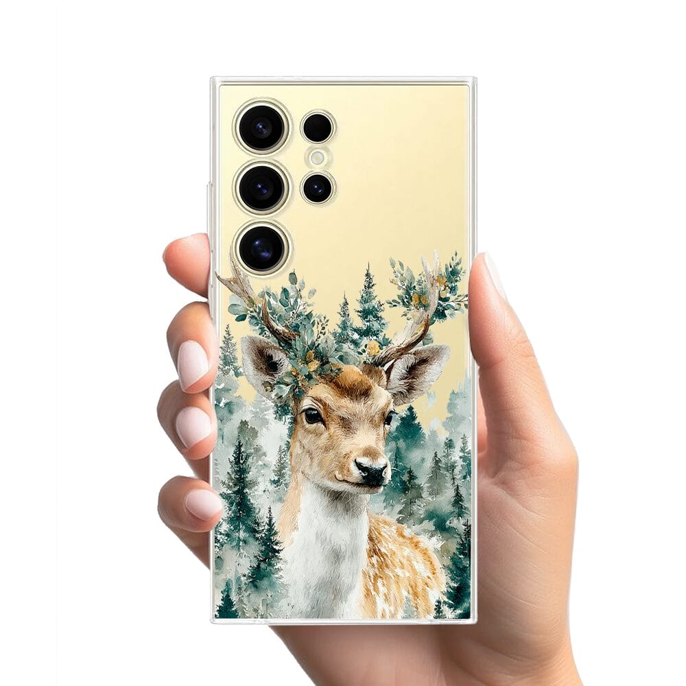 Etui do Samsung Galaxy S24 Ultra przeźroczyste, silikonowe Flexi, Przytulne święta, Leśny jelonek