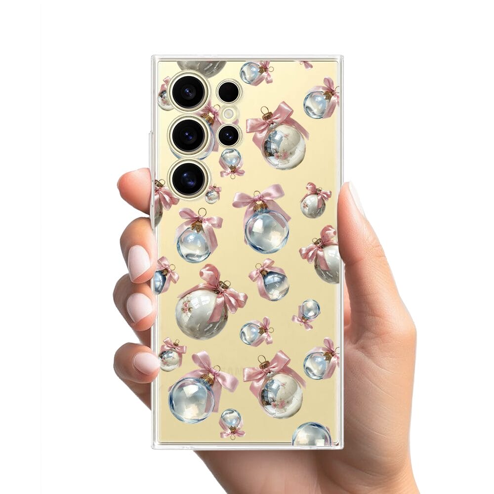 Etui do Samsung Galaxy S24 Ultra przeźroczyste, silikonowe Flexi, Przytulne święta, Pastelowe bombki
