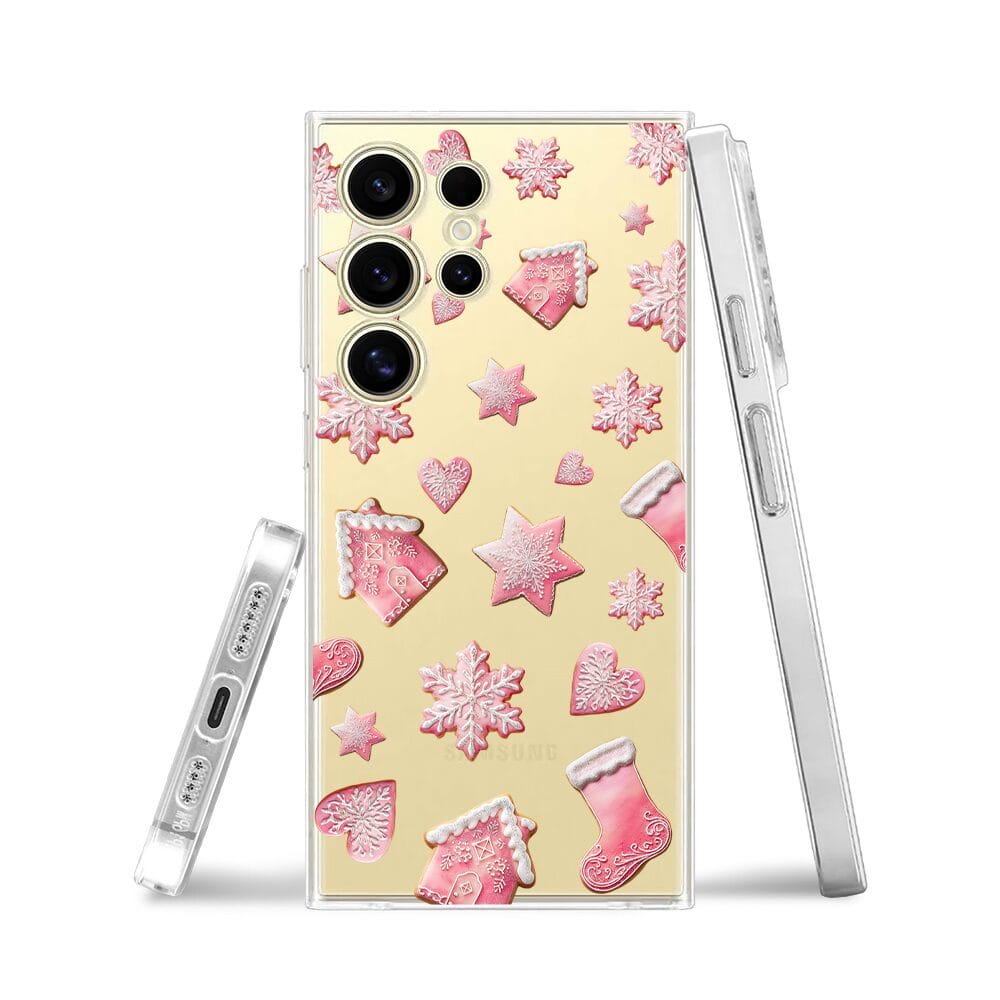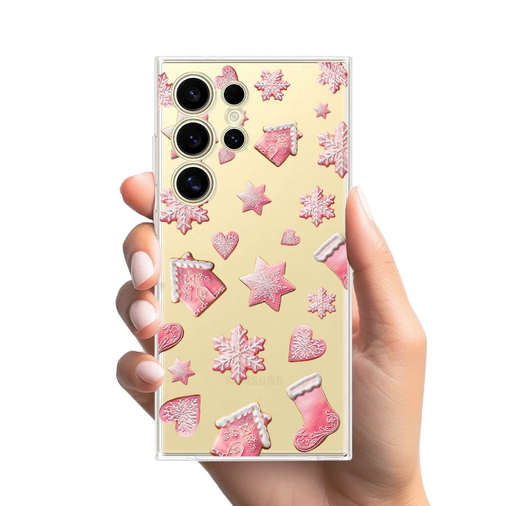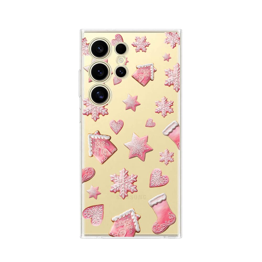 Etui do Samsung Galaxy S24 Ultra przeźroczyste, silikonowe Flexi, Przytulne święta, Różowe pierniczki