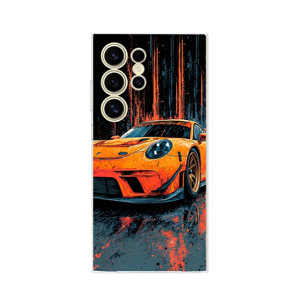 Etui do Samsung Galaxy S24 Ultra przeźroczyste, silikonowe Flexi, Szybkie Auta, Pomarańczowa 911