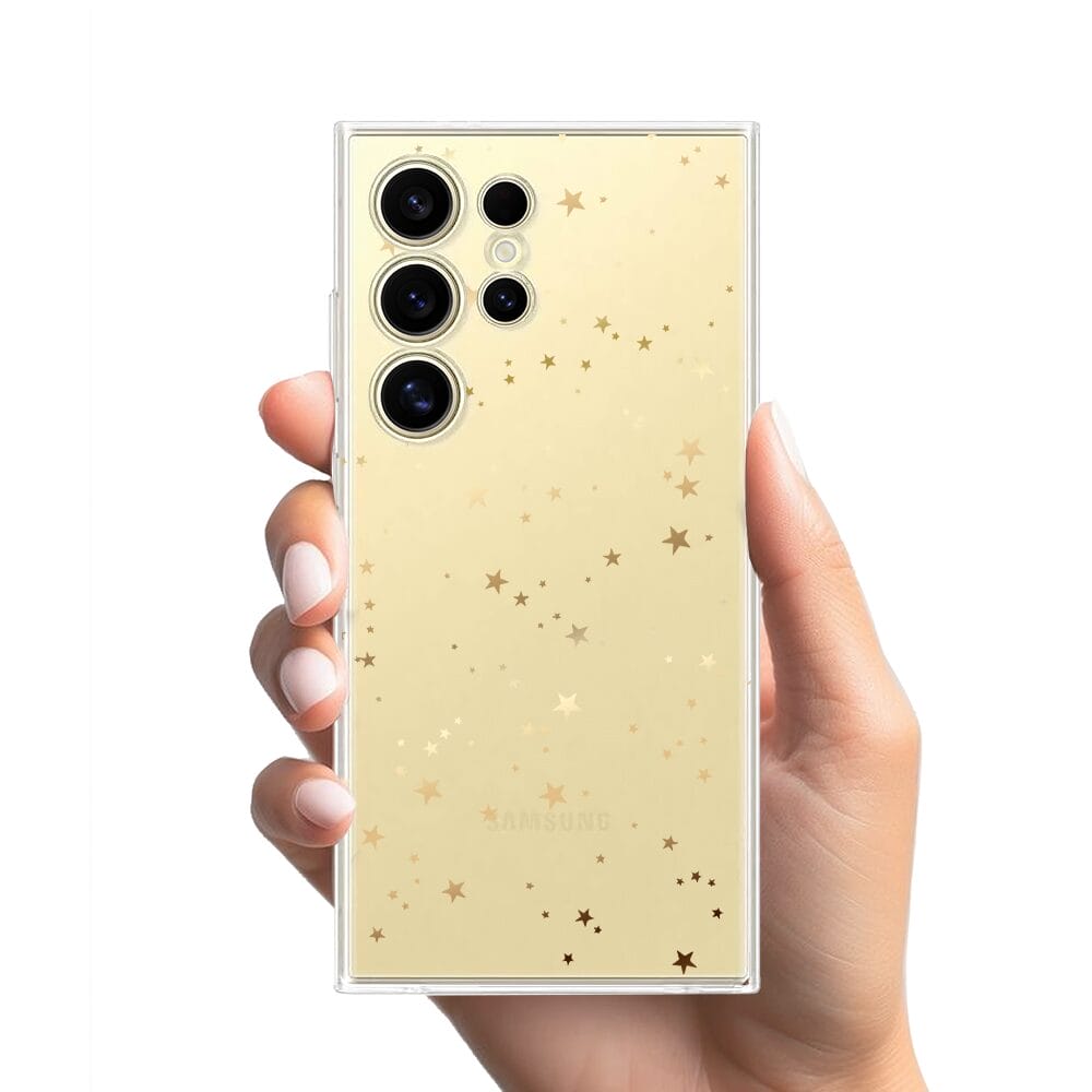 Etui do Samsung Galaxy S24 Ultra przeźroczyste, silikonowe Flexi, Zimowa magia, Złote gwiazdki