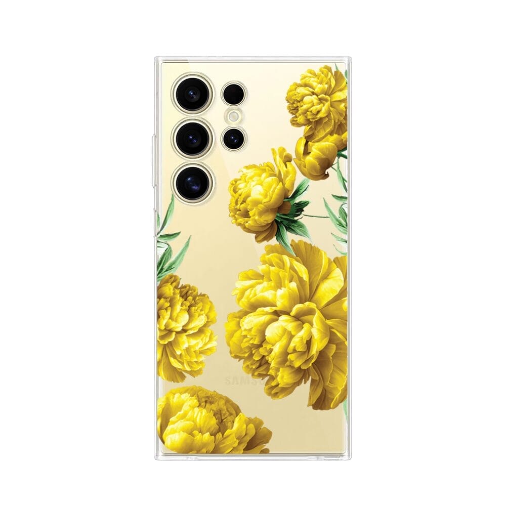 Etui do Samsung Galaxy S24 Ultra przeźroczyste, silikonowe Flexi, żółte piwonie