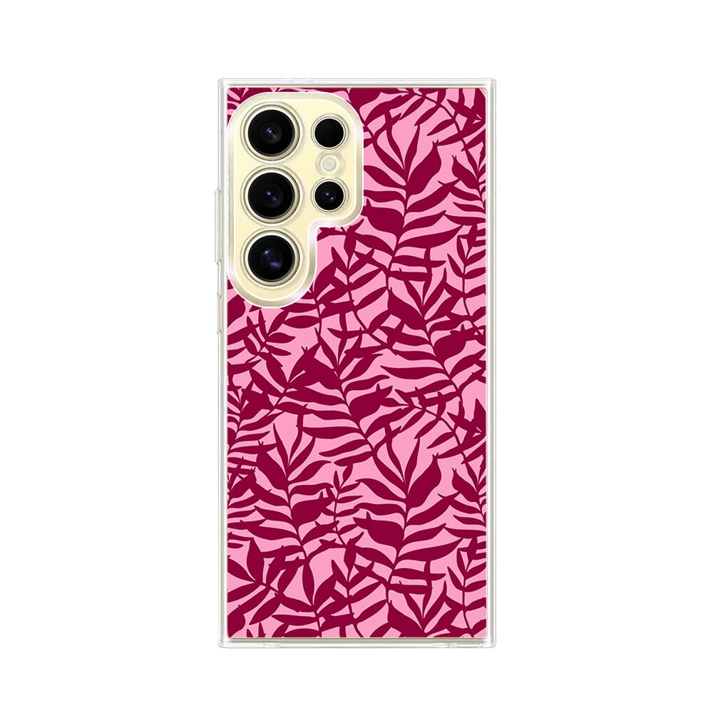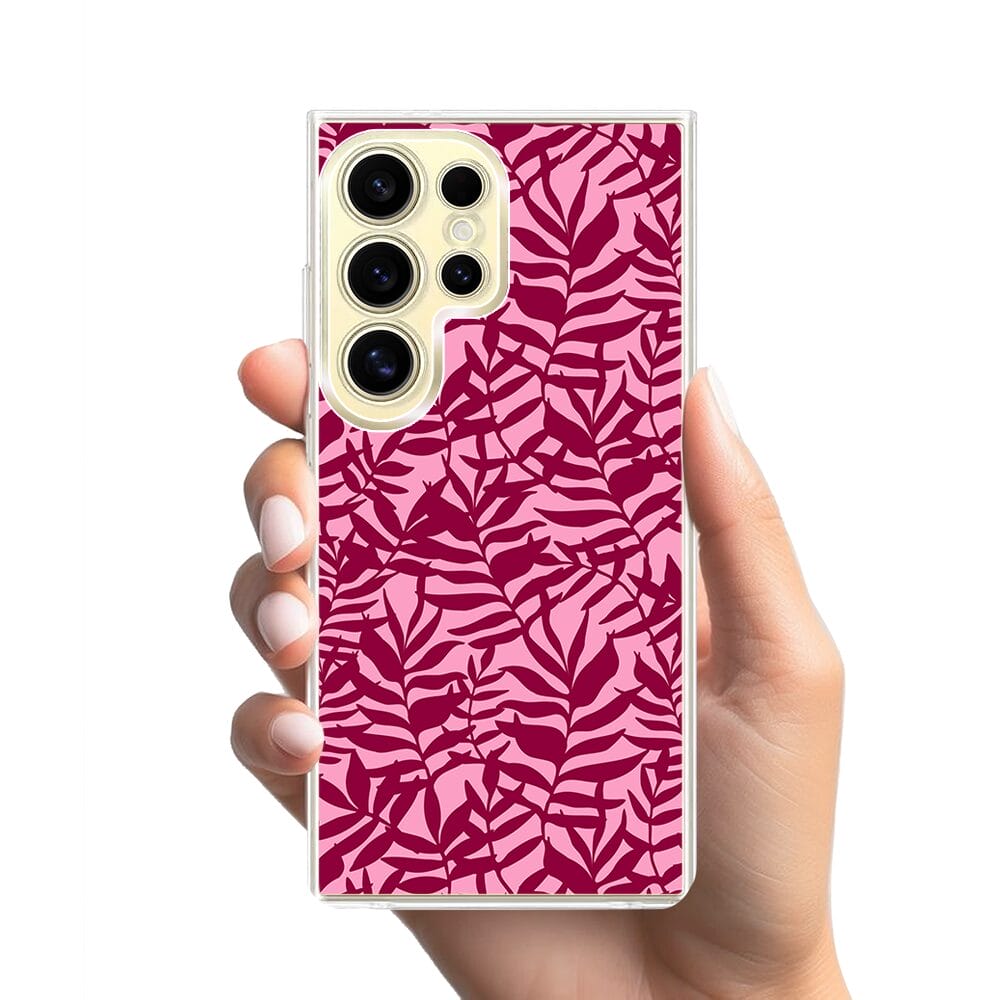 Etui do Samsung Galaxy S24 Ultra z MagSafe przeźroczyste, silikonowe Flexi, bordowe liście