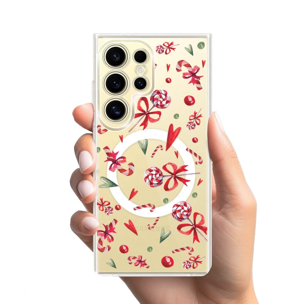 Etui do Samsung Galaxy S24 Ultra z MagSafe przeźroczyste, silikonowe Flexi, Cukierki świąteczne