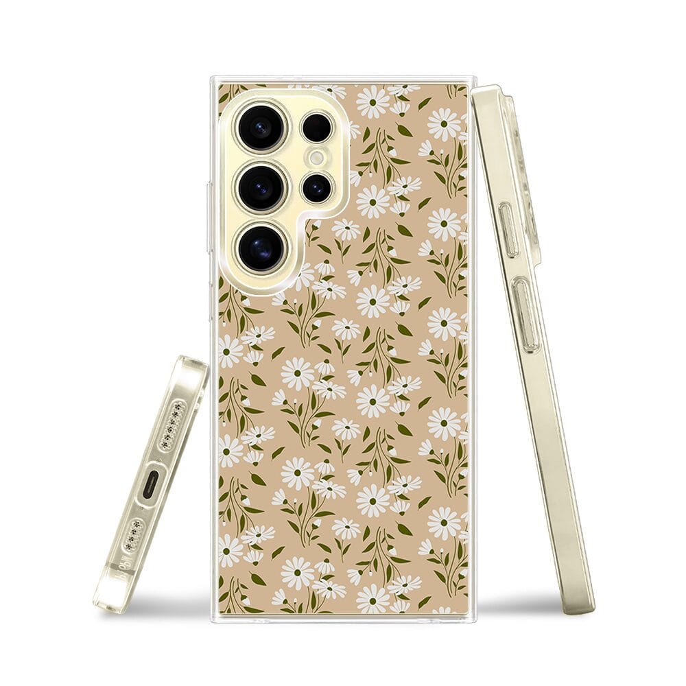 Etui do Samsung Galaxy S24 Ultra z MagSafe przeźroczyste, silikonowe Flexi, delikatne kwiatki na cielistym tle