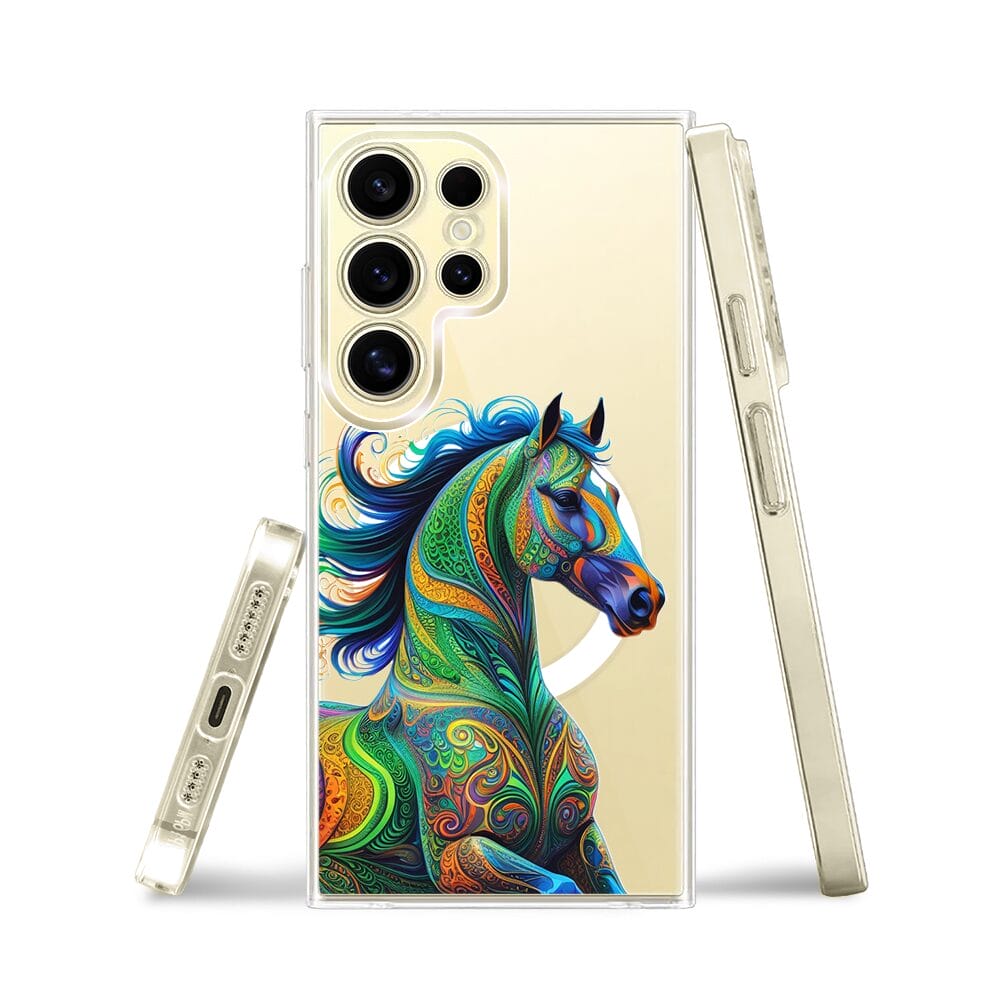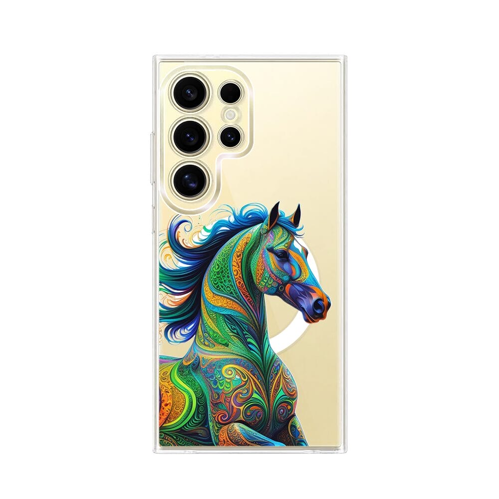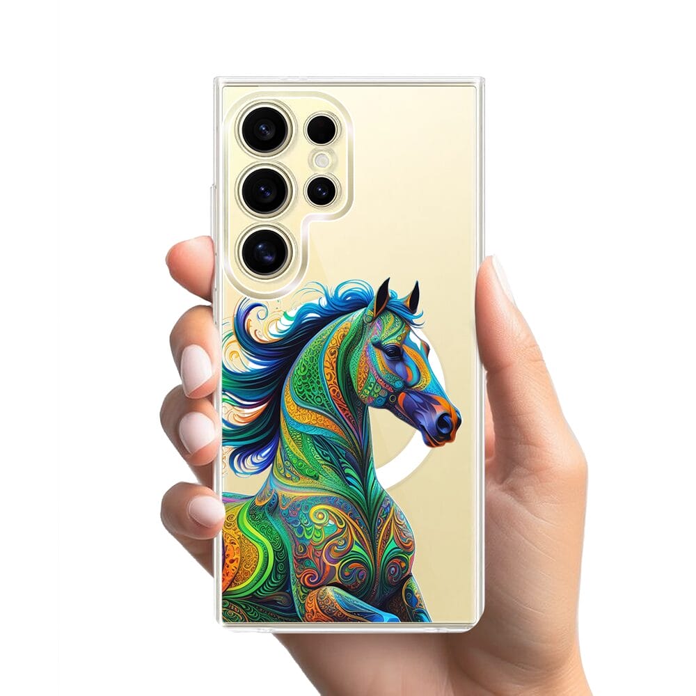 Etui do Samsung Galaxy S24 Ultra z MagSafe przeźroczyste, silikonowe Flexi, Dzika Mandala, Koń