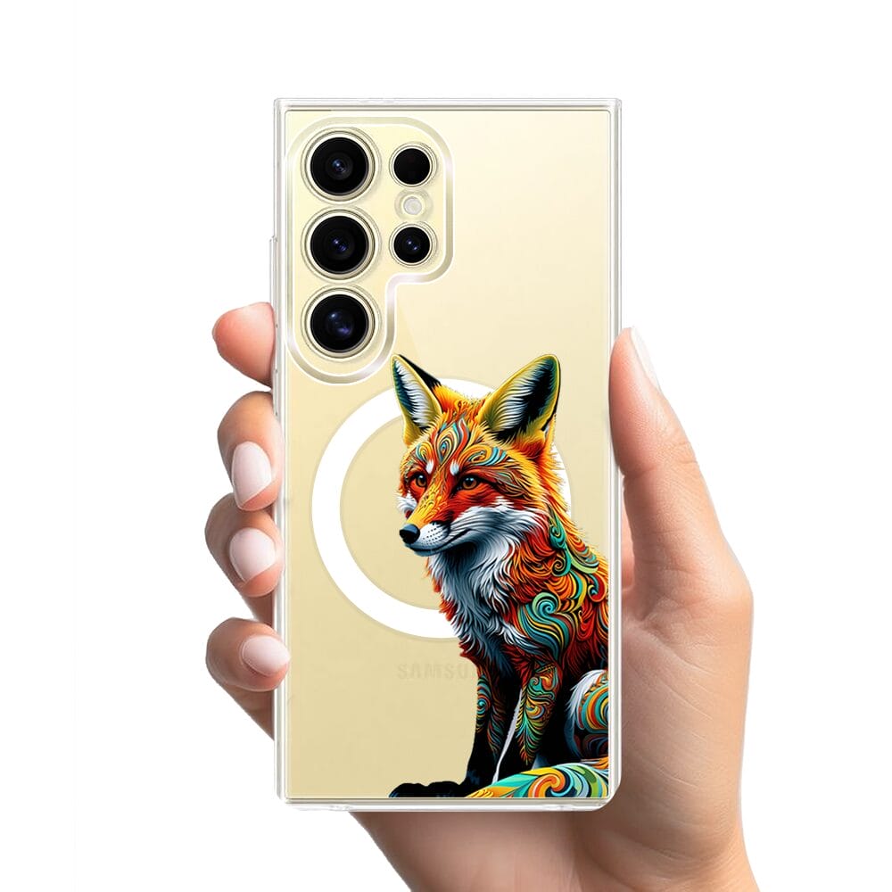 Etui do Samsung Galaxy S24 Ultra z MagSafe przeźroczyste, silikonowe Flexi, Dzika Mandala, Lis