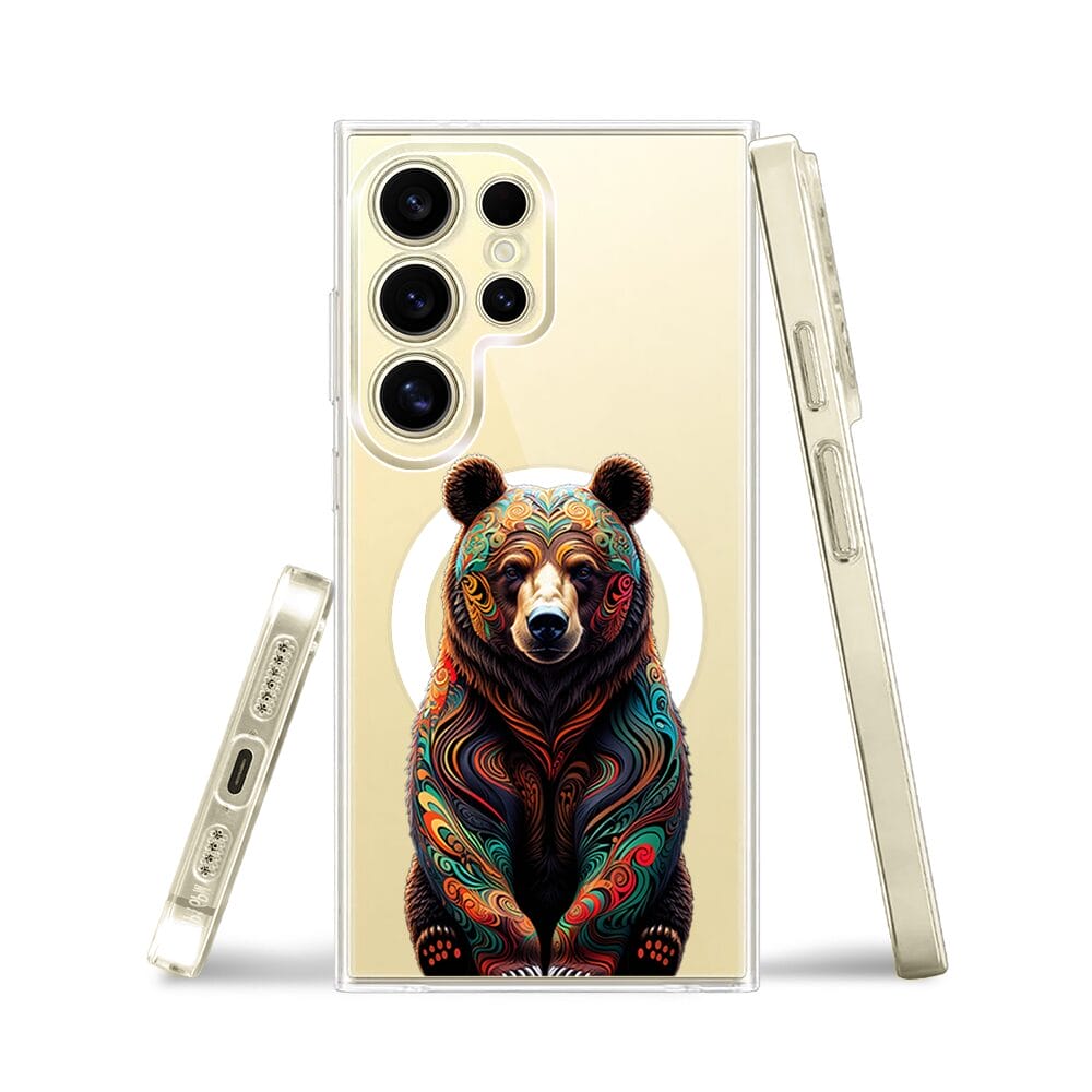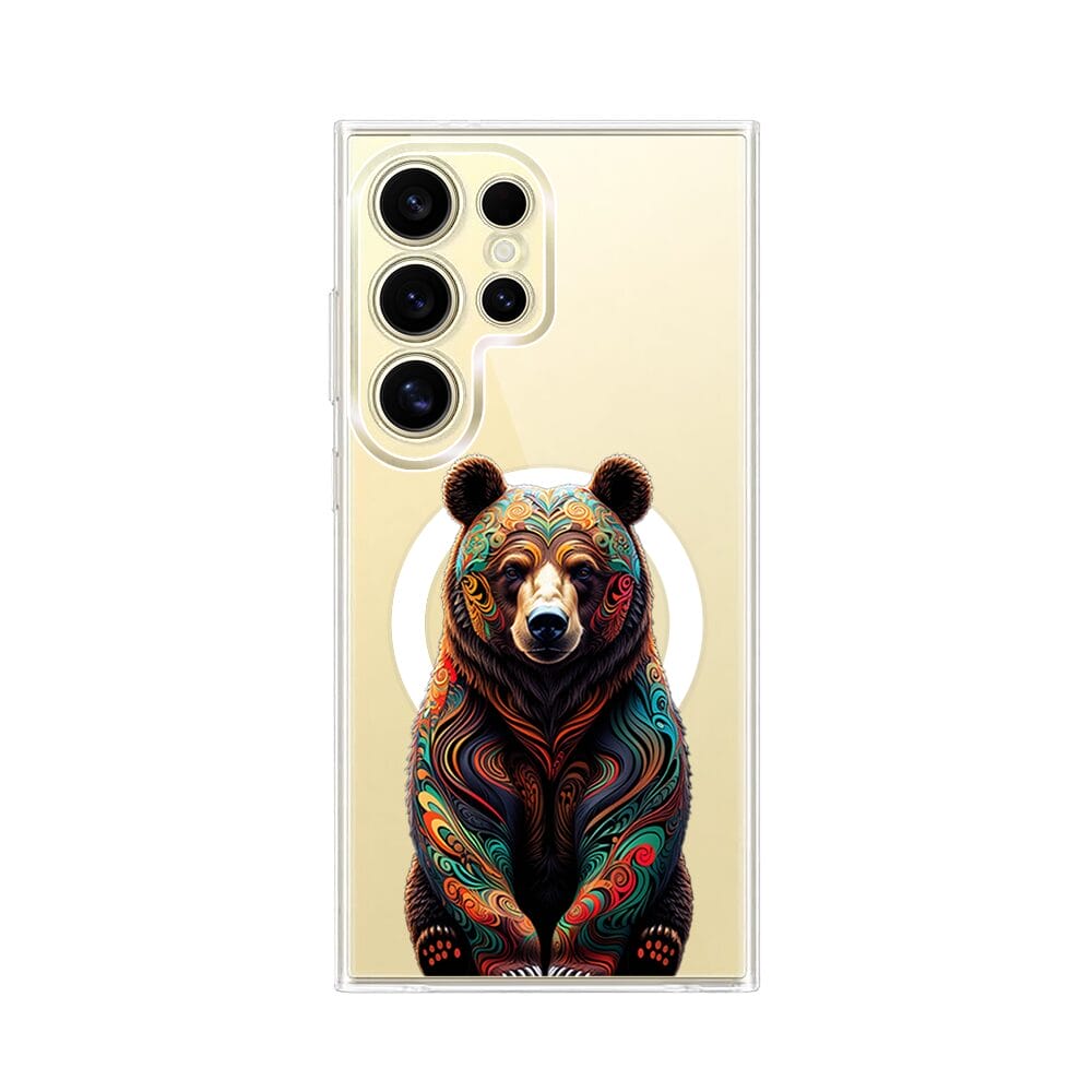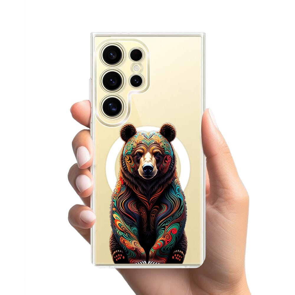 Etui do Samsung Galaxy S24 Ultra z MagSafe przeźroczyste, silikonowe Flexi, Dzika Mandala, Niedźwiedź