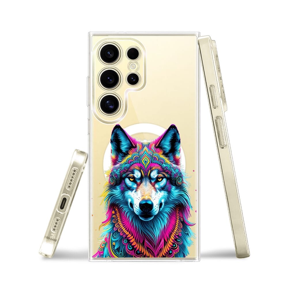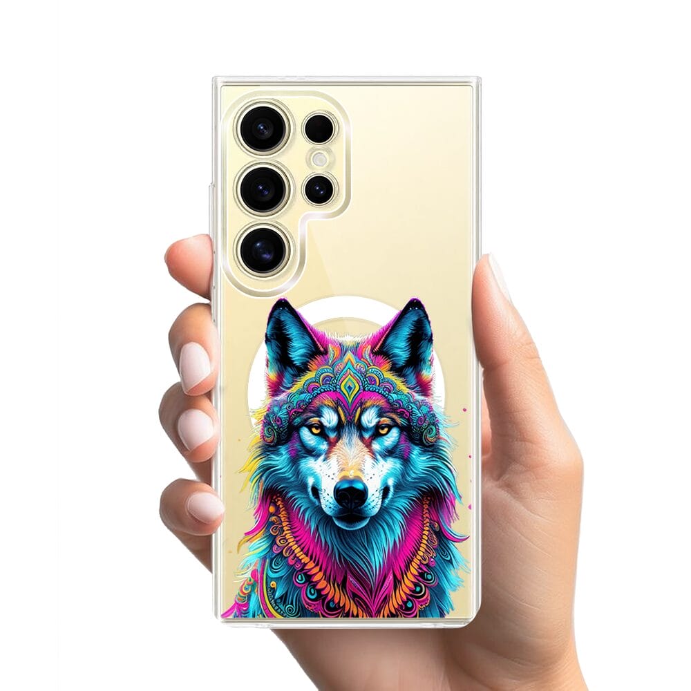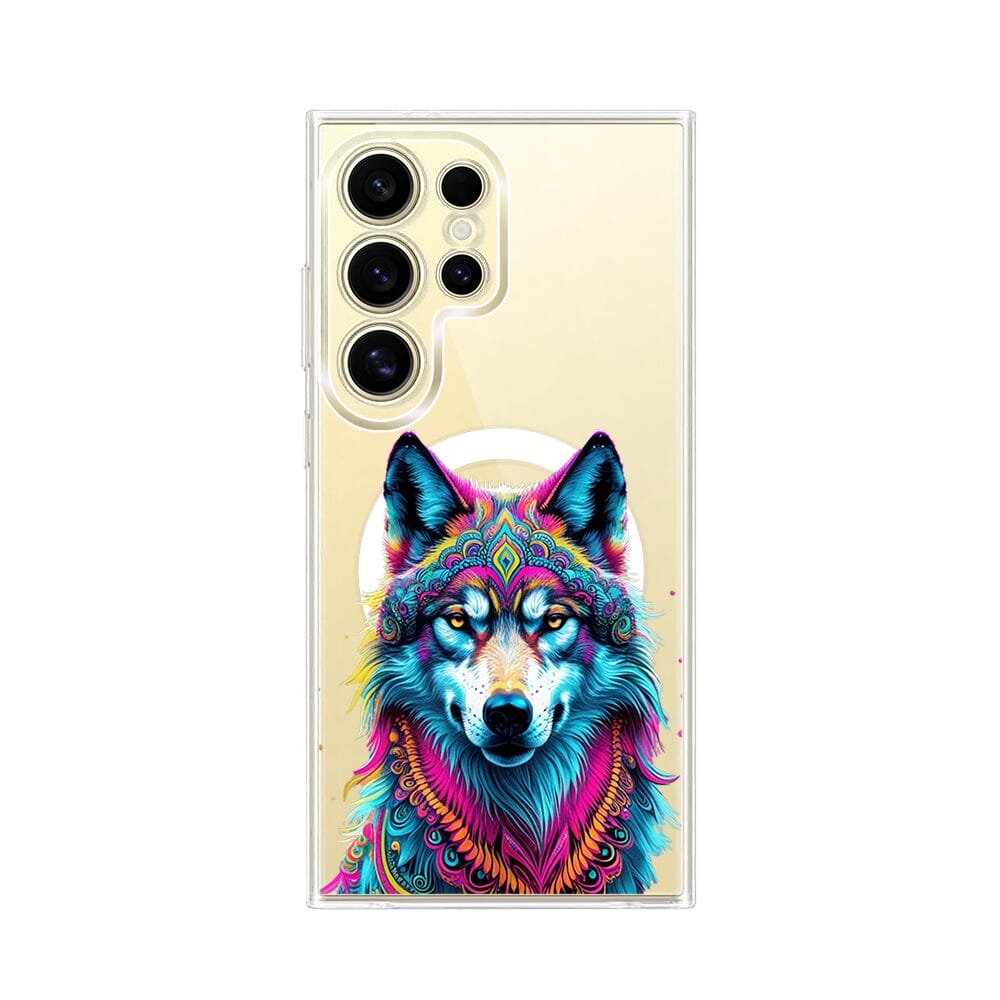 Etui do Samsung Galaxy S24 Ultra z MagSafe przeźroczyste, silikonowe Flexi, Dzika Mandala, Wilk