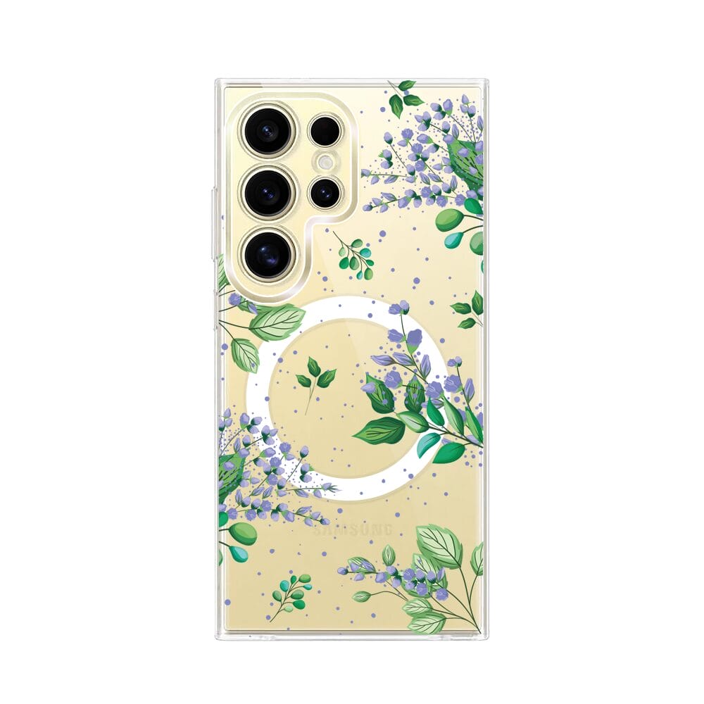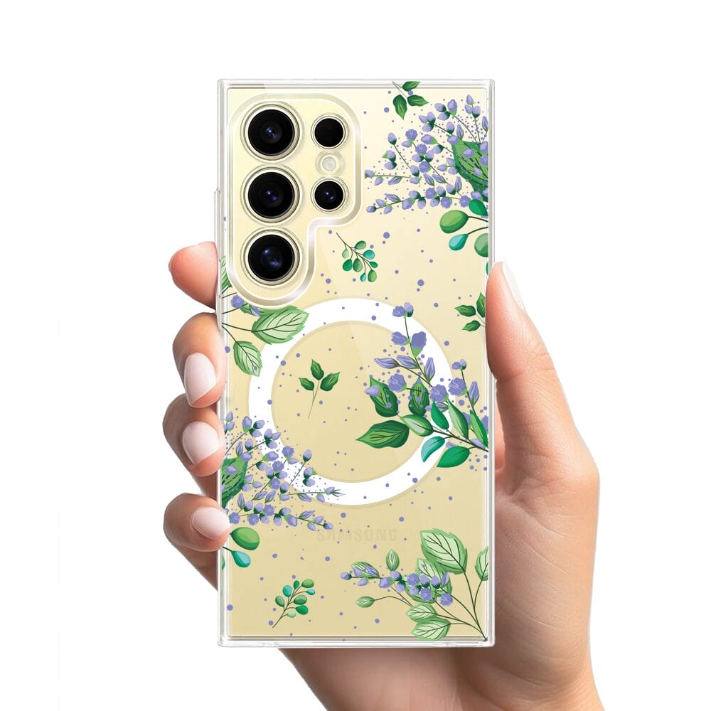 Etui do Samsung Galaxy S24 Ultra z MagSafe przeźroczyste, silikonowe Flexi, fioletowe kwiatki