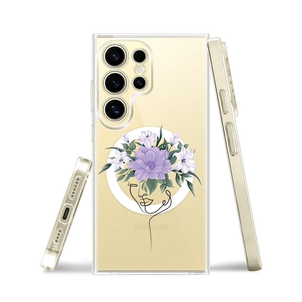 Etui do Samsung Galaxy S24 Ultra z MagSafe przeźroczyste, silikonowe Flexi, kobieta z kwiatami