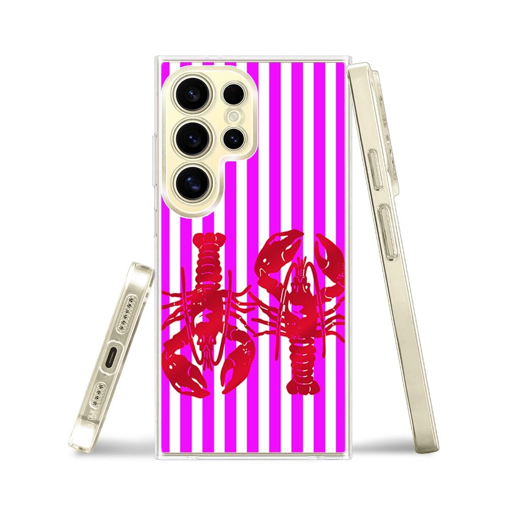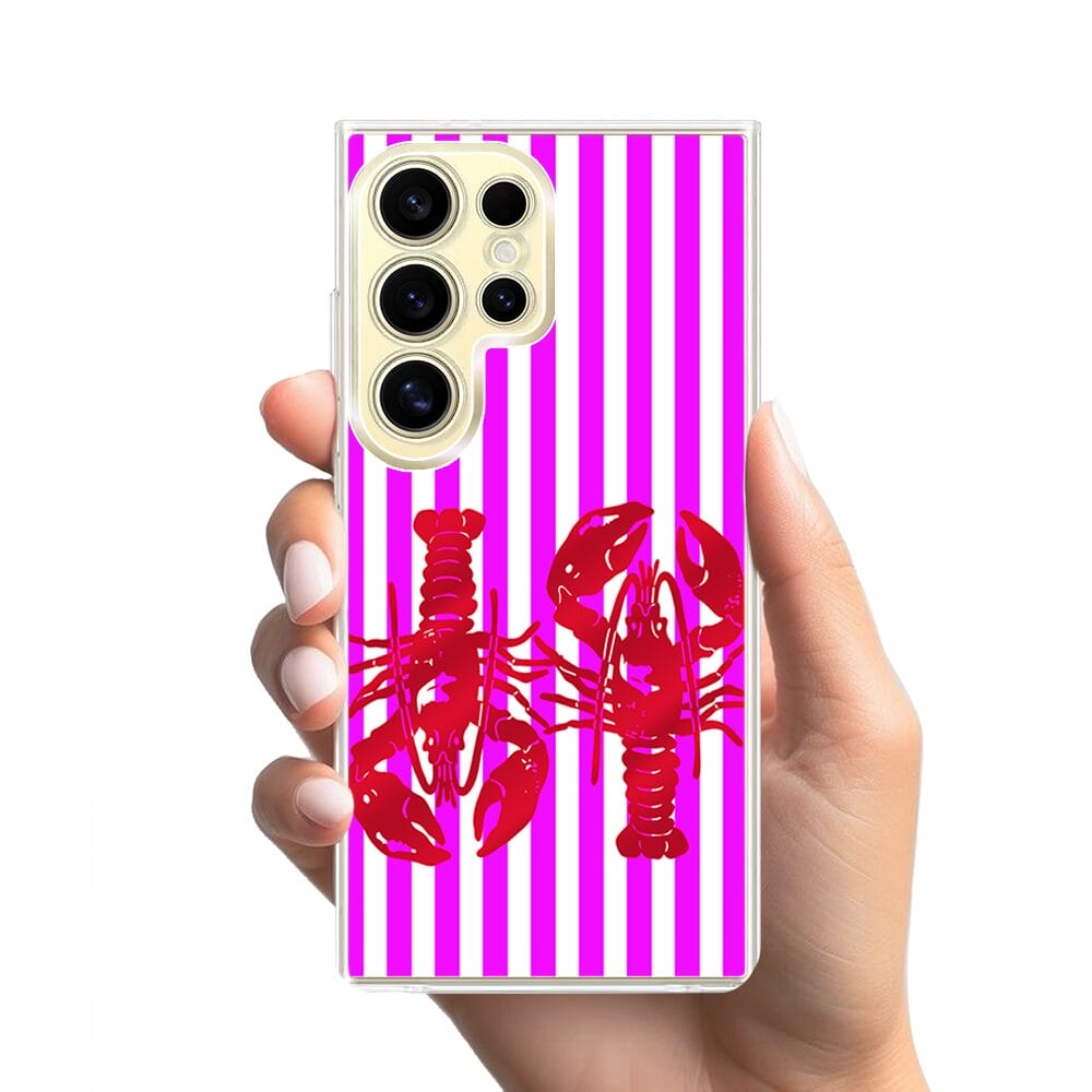 Etui do Samsung Galaxy S24 Ultra z MagSafe przeźroczyste, silikonowe Flexi, kraby z różowymi paskami