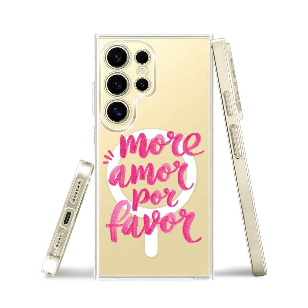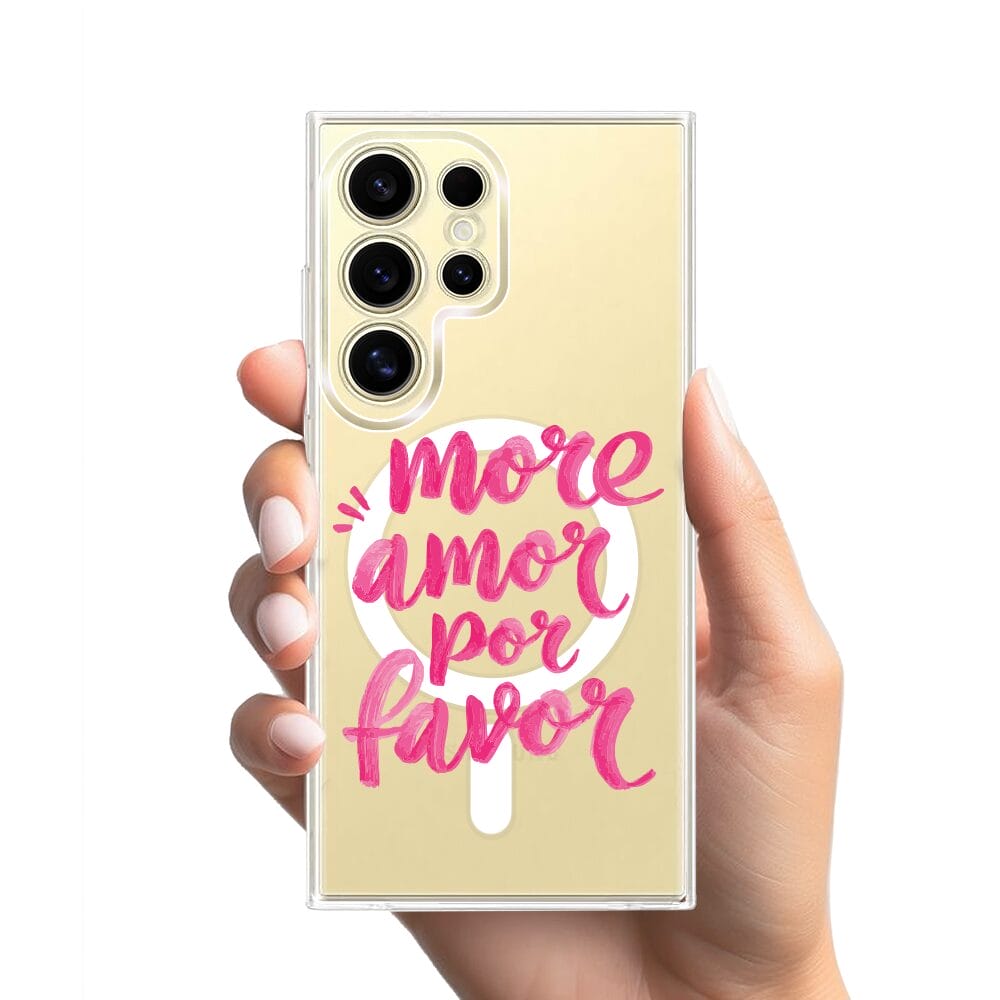 Etui do Samsung Galaxy S24 Ultra z MagSafe przeźroczyste, silikonowe Flexi, Positive Vibes, More amore per favore