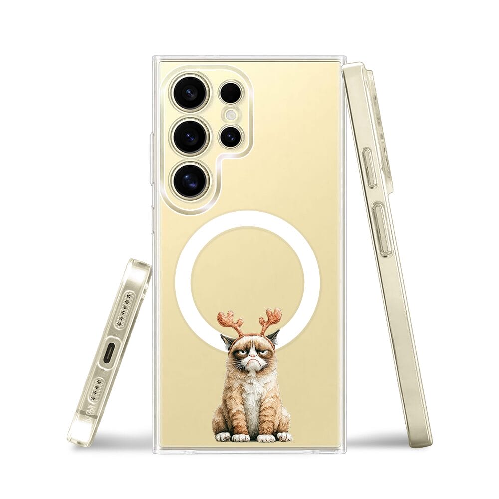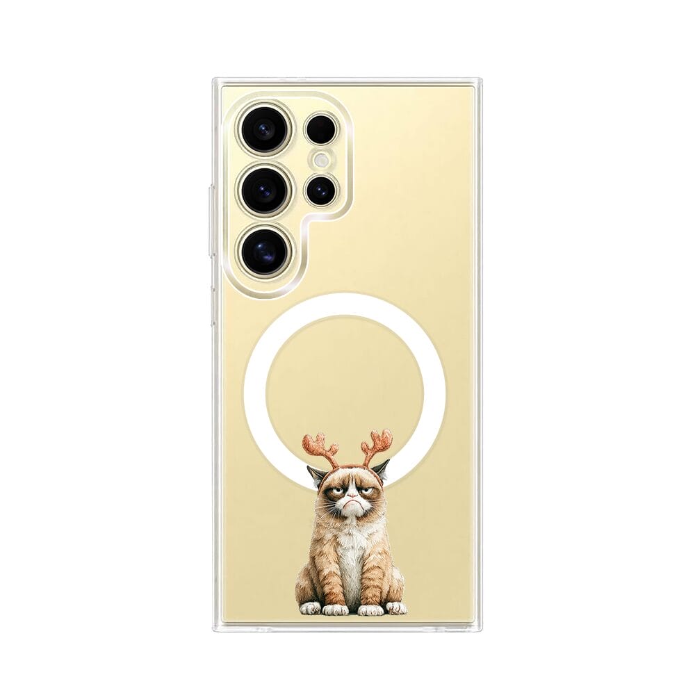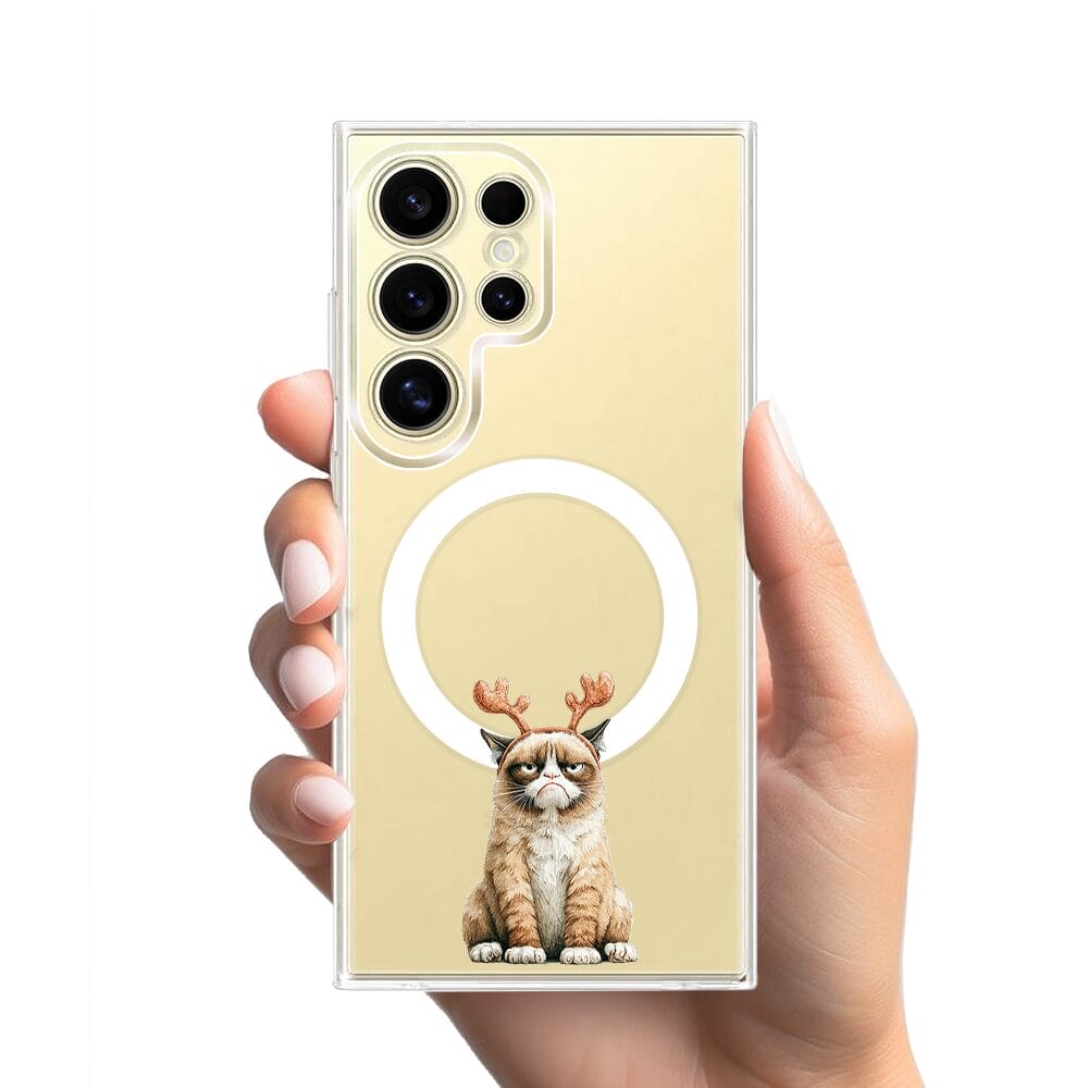 Etui do Samsung Galaxy S24 Ultra z MagSafe przeźroczyste, silikonowe Flexi, Przytulne święta, Kot który nie chciał być reniferem