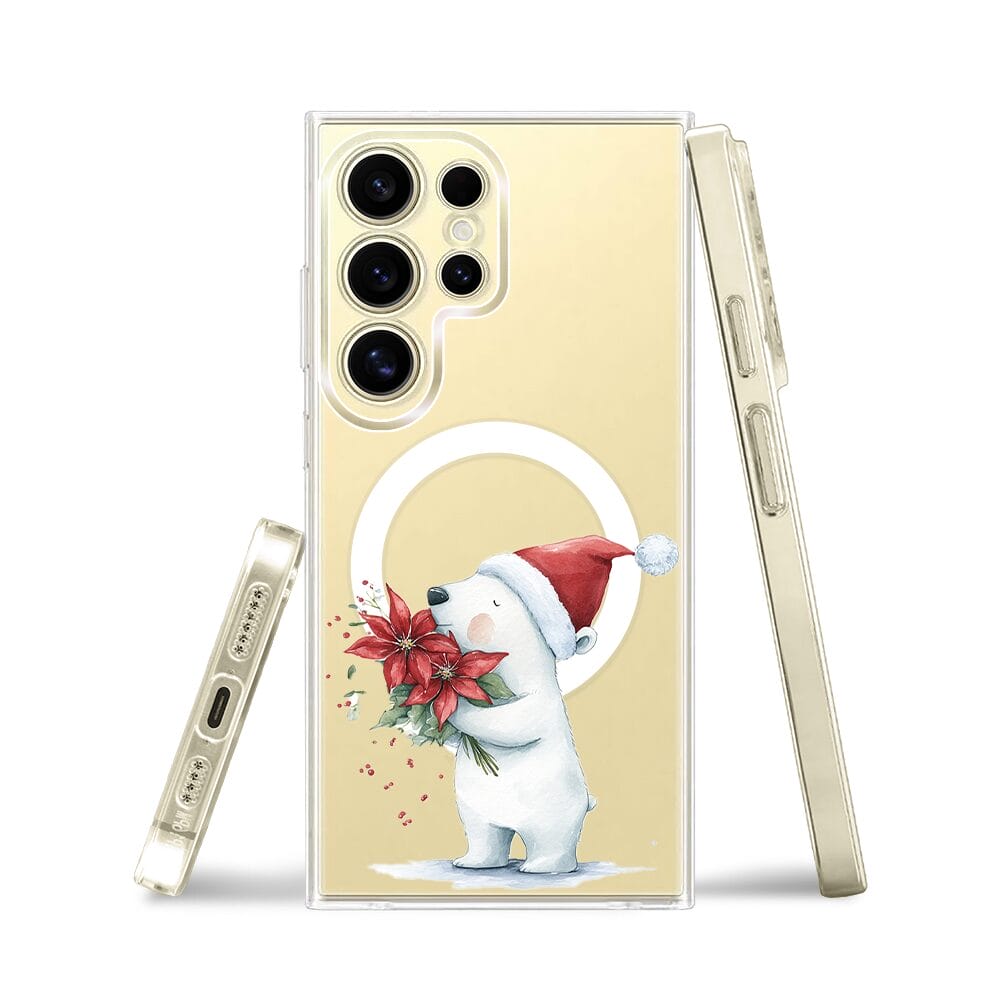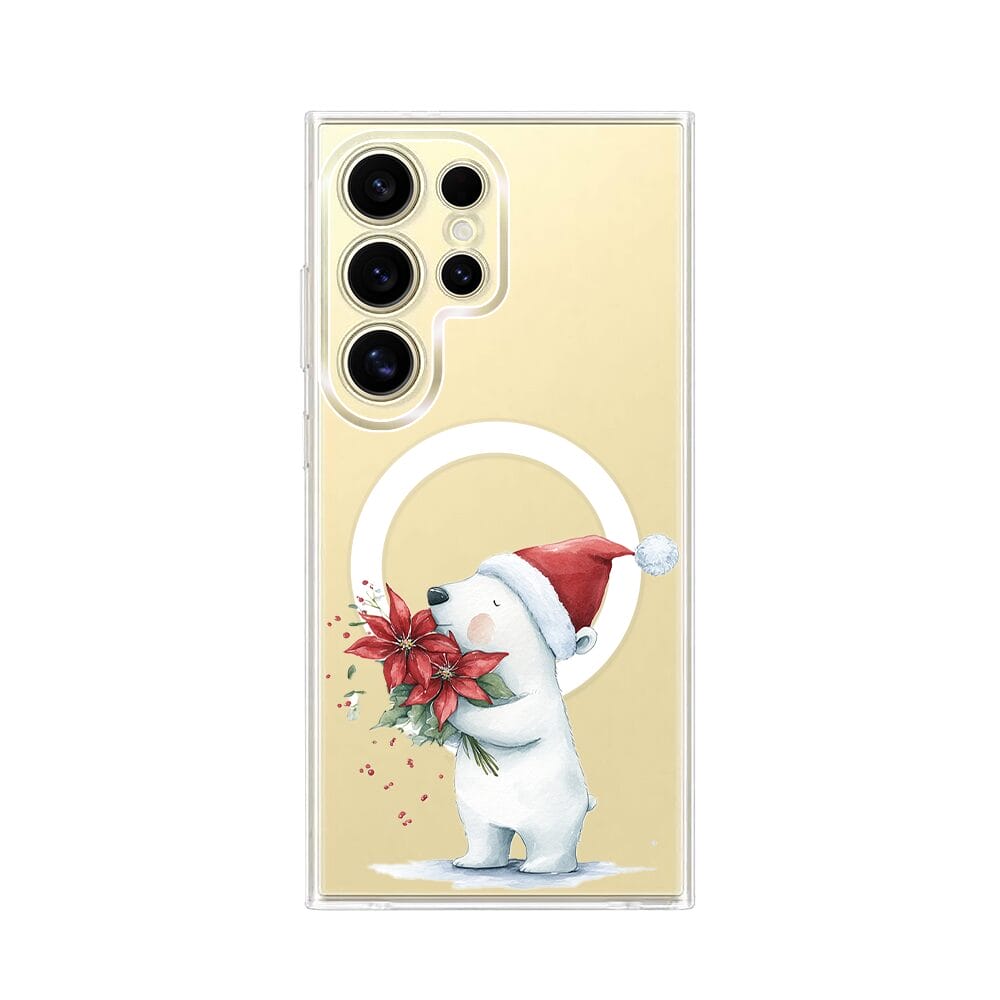Etui do Samsung Galaxy S24 Ultra z MagSafe przeźroczyste, silikonowe Flexi, Przytulne święta, Miś świąteczny
