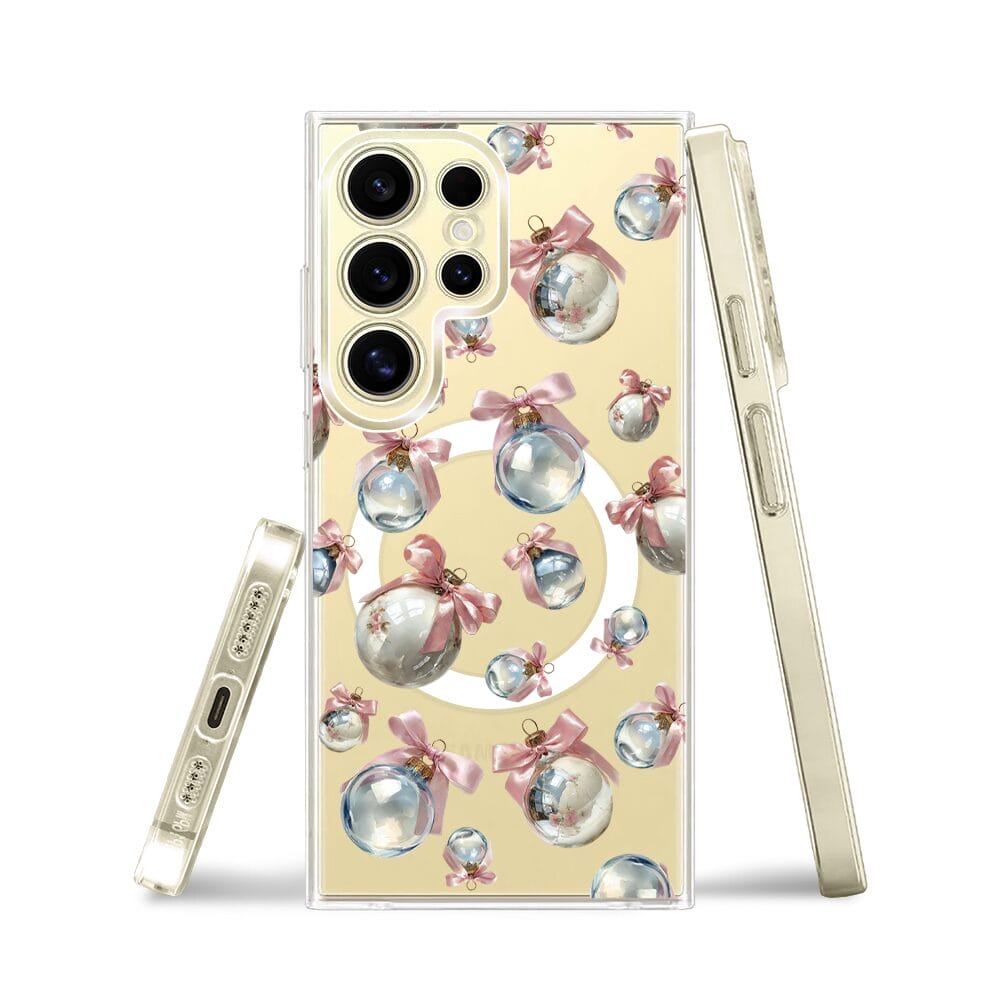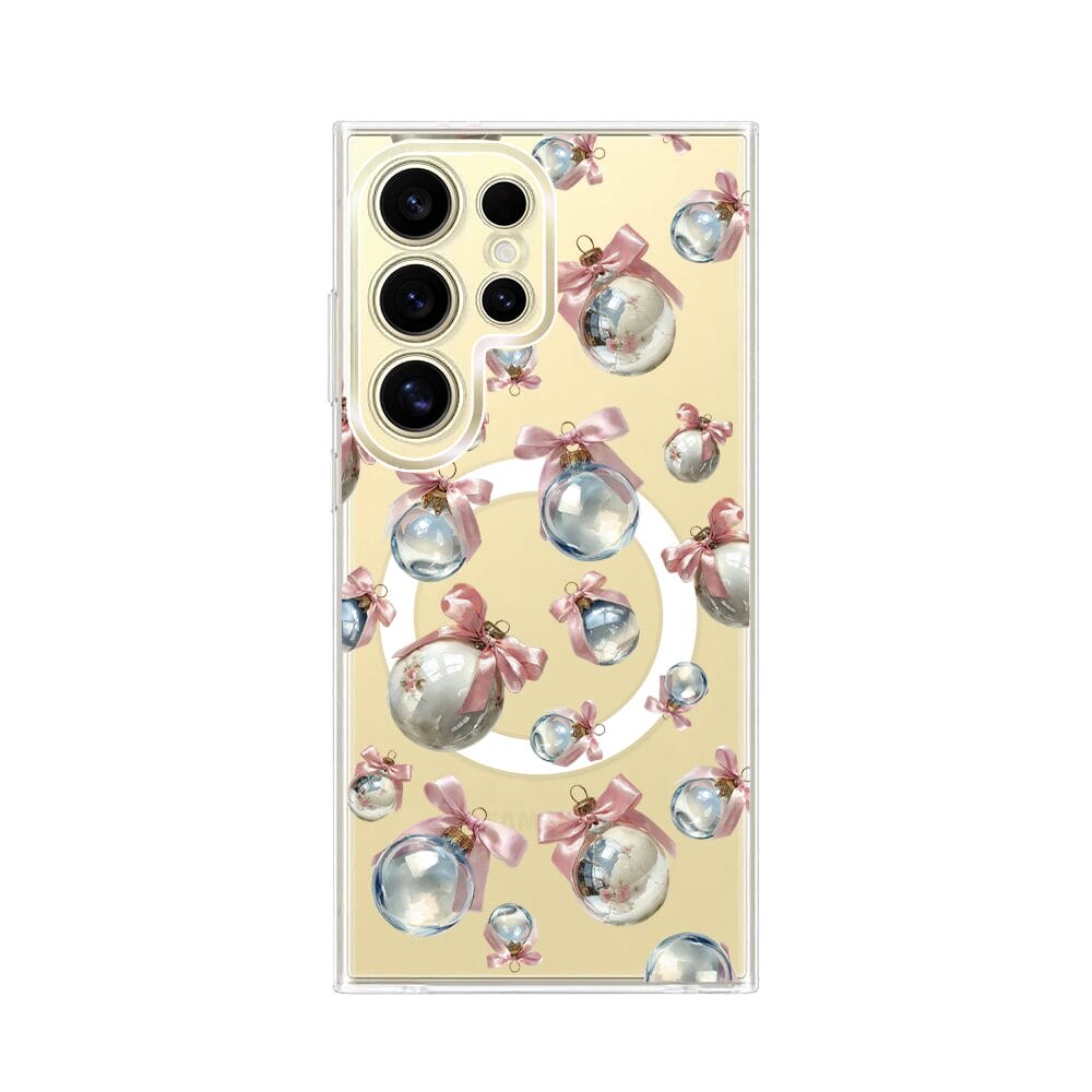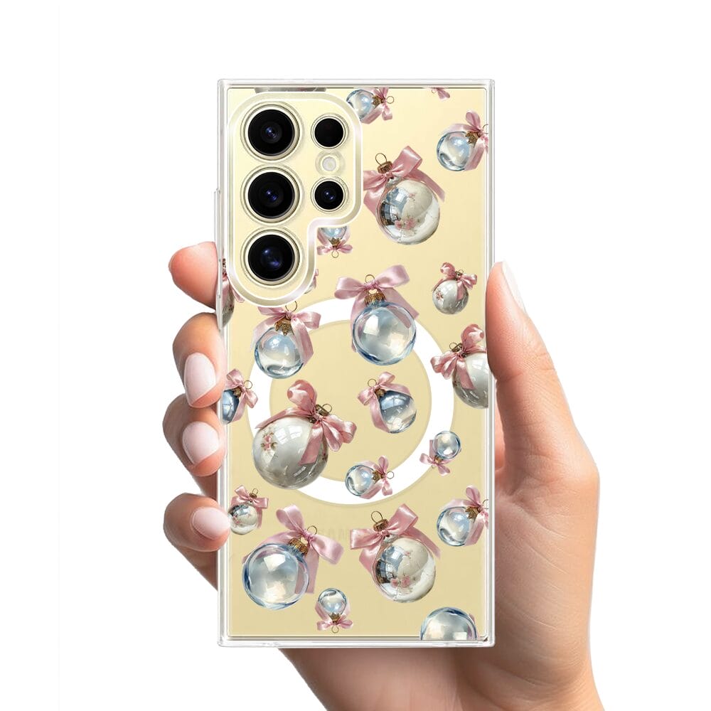Etui do Samsung Galaxy S24 Ultra z MagSafe przeźroczyste, silikonowe Flexi, Przytulne święta, Pastelowe bombki