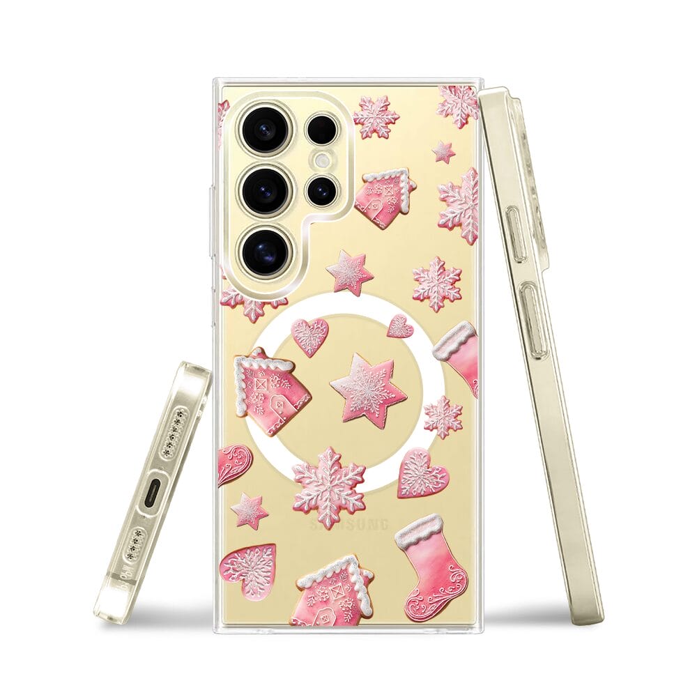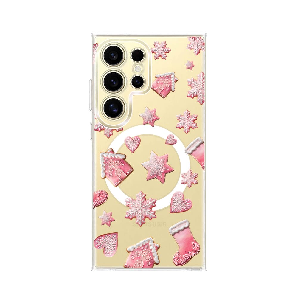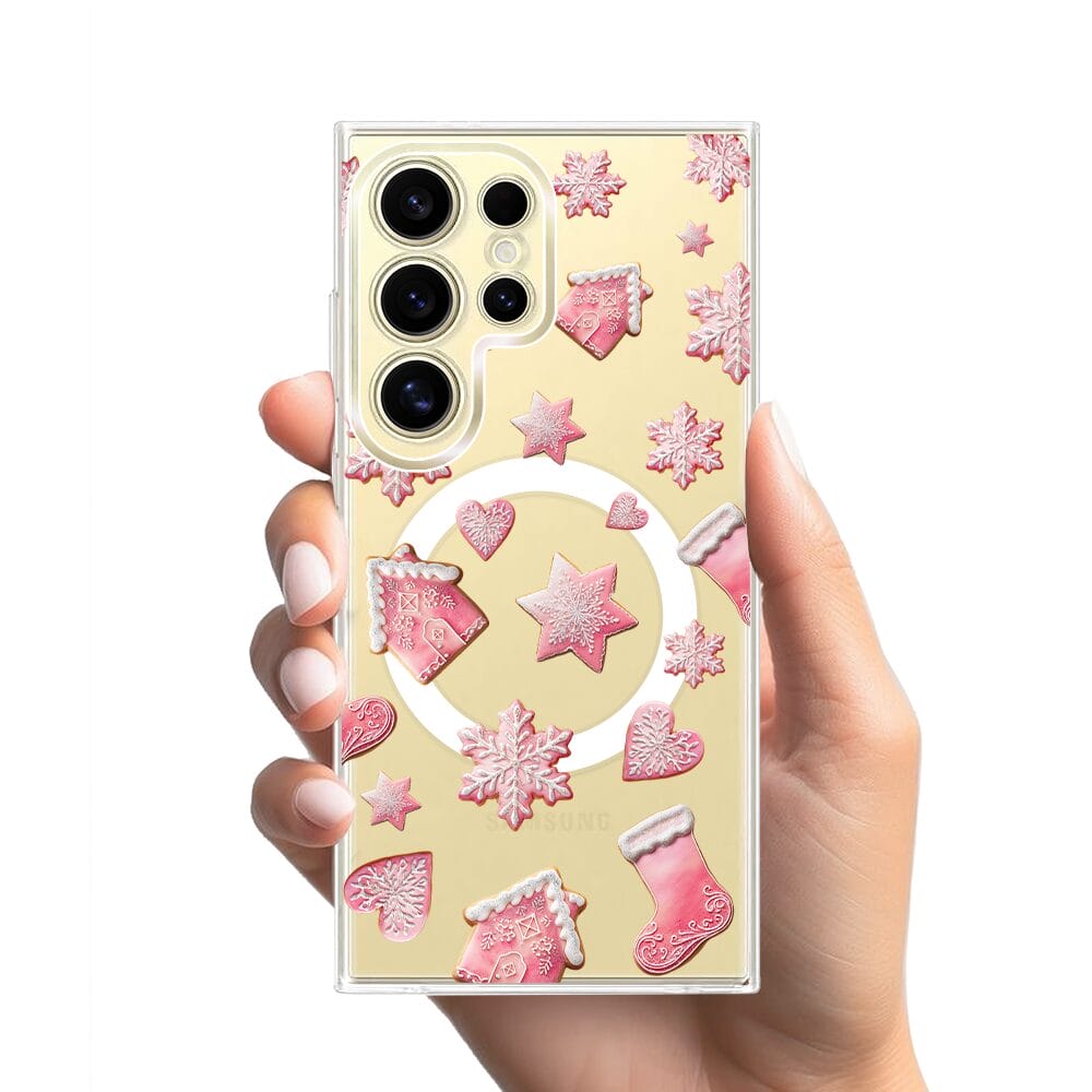 Etui do Samsung Galaxy S24 Ultra z MagSafe przeźroczyste, silikonowe Flexi, Przytulne święta, Różowe pierniczki