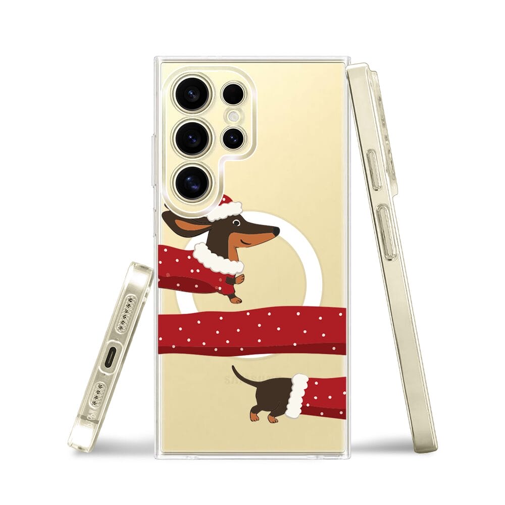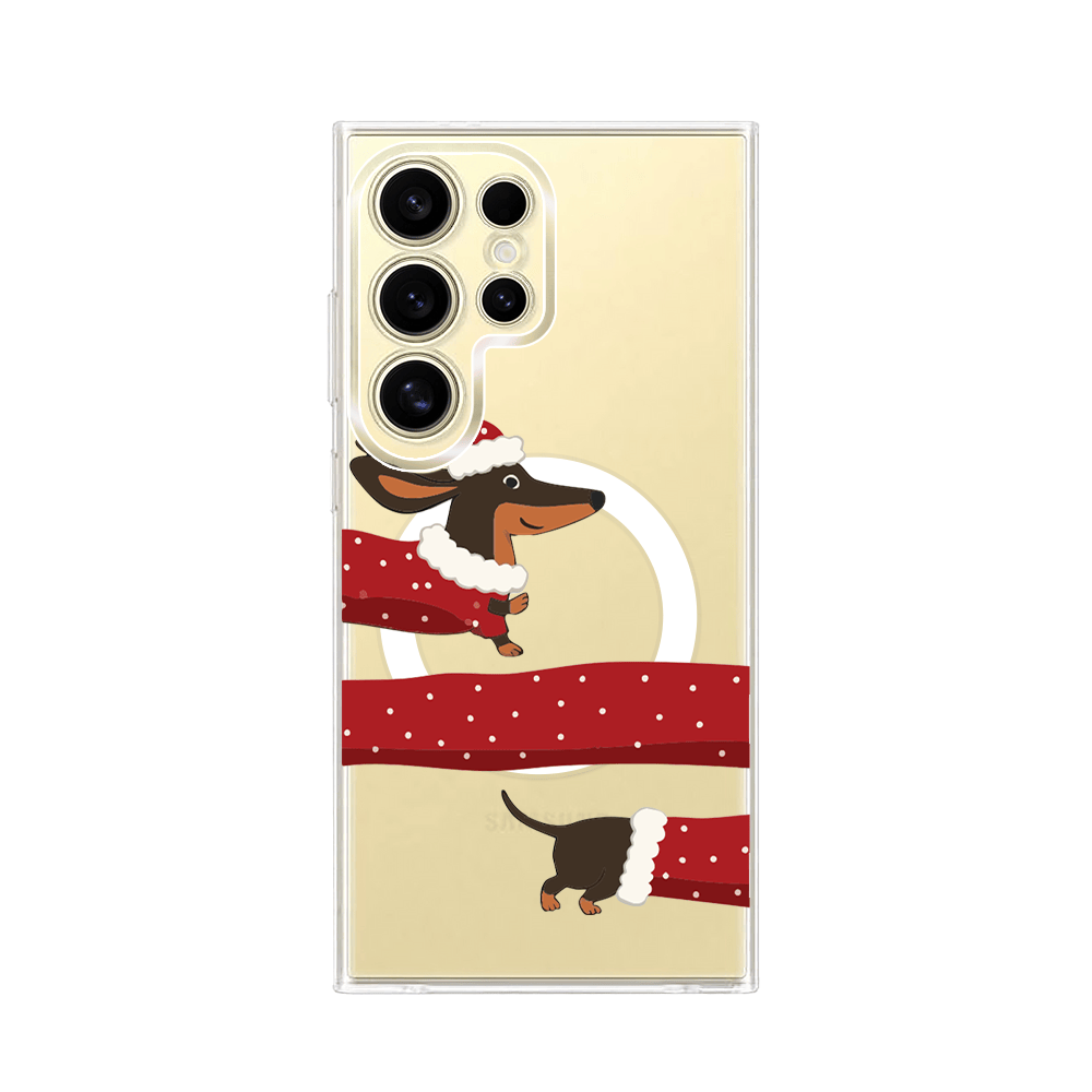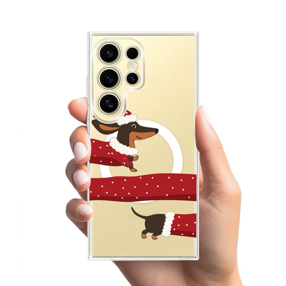Etui do Samsung Galaxy S24 Ultra z MagSafe przeźroczyste, silikonowe Flexi, Przytulne święta, świąteczny jamnik